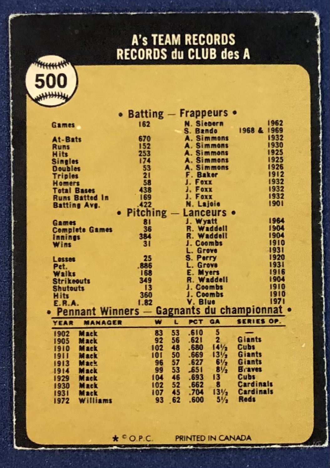 Lot 954 1973 O-PEE-CHEE OAKLAND A's