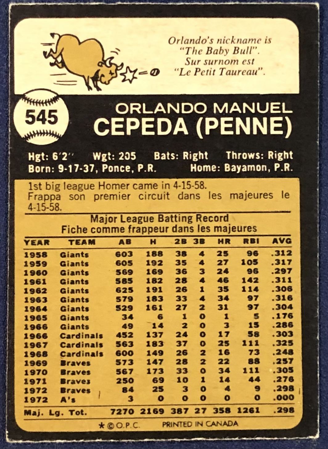 Lot 955 1973 O-PEE-CHEE ORLANDO CEPEDA