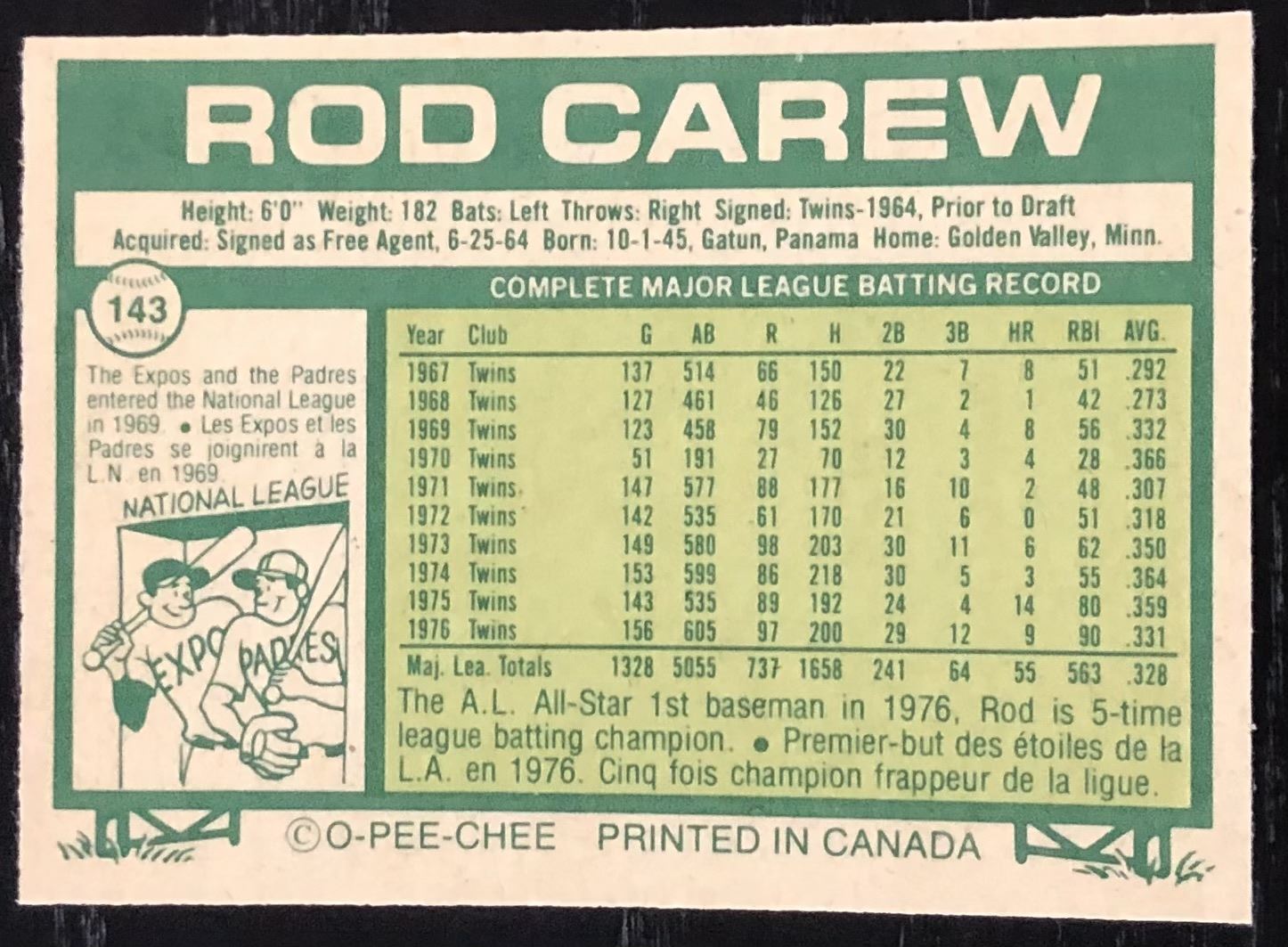 Lot 971 1977 O-PEE-CHEE ROD CAREW (HOF)
