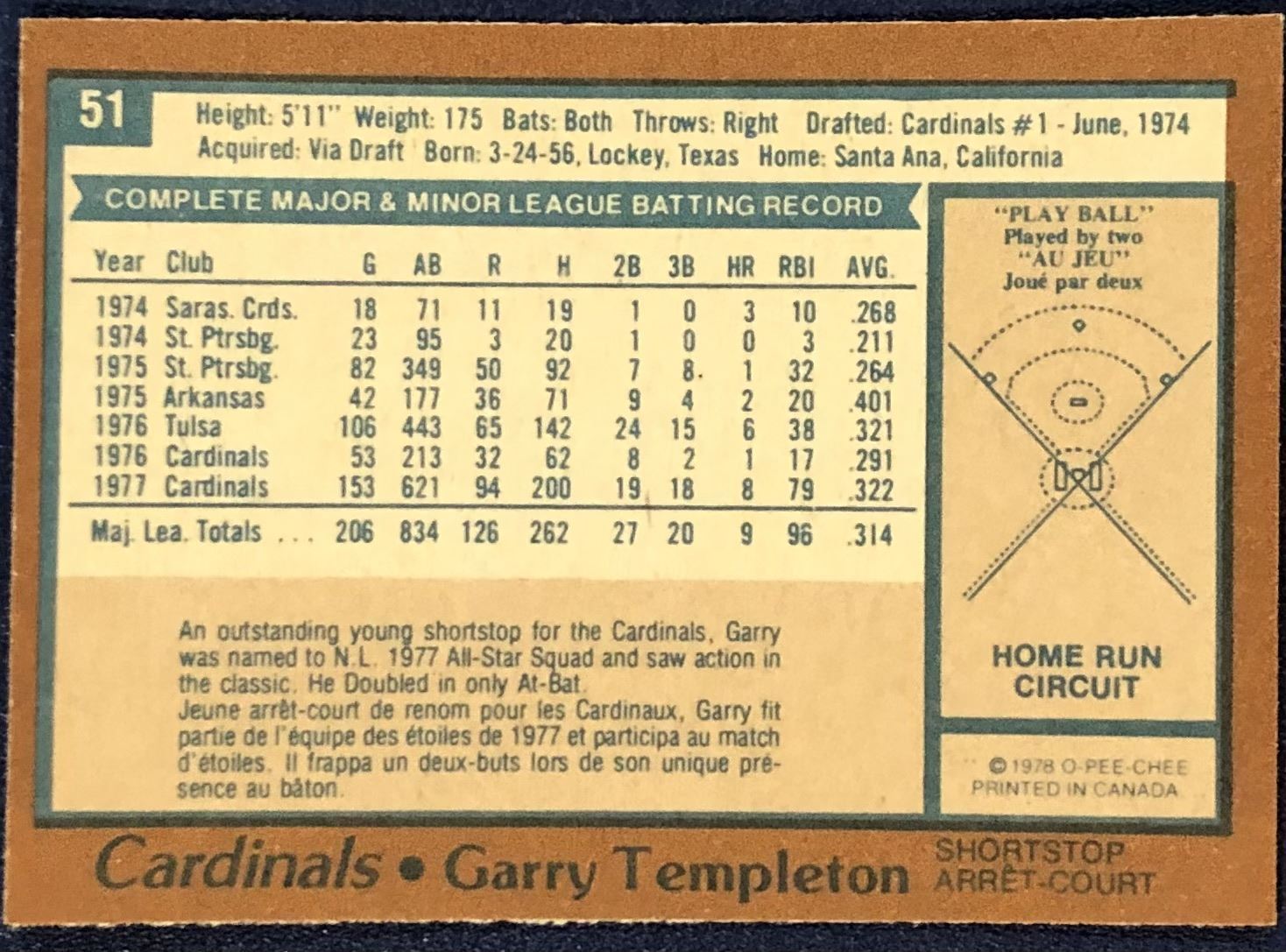 Lot 981 1978 O-PEE-CHEE GARRY TEMPLETON