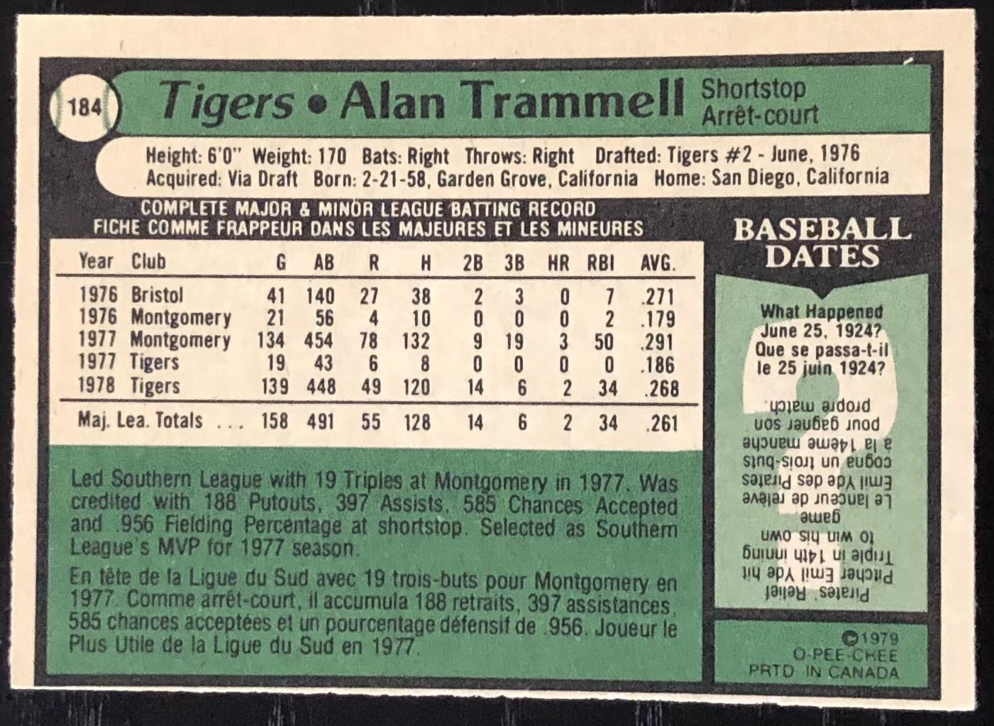 Lot 997 1979 O-PEE-CHEE ALAN TRAMMELL (HOF)