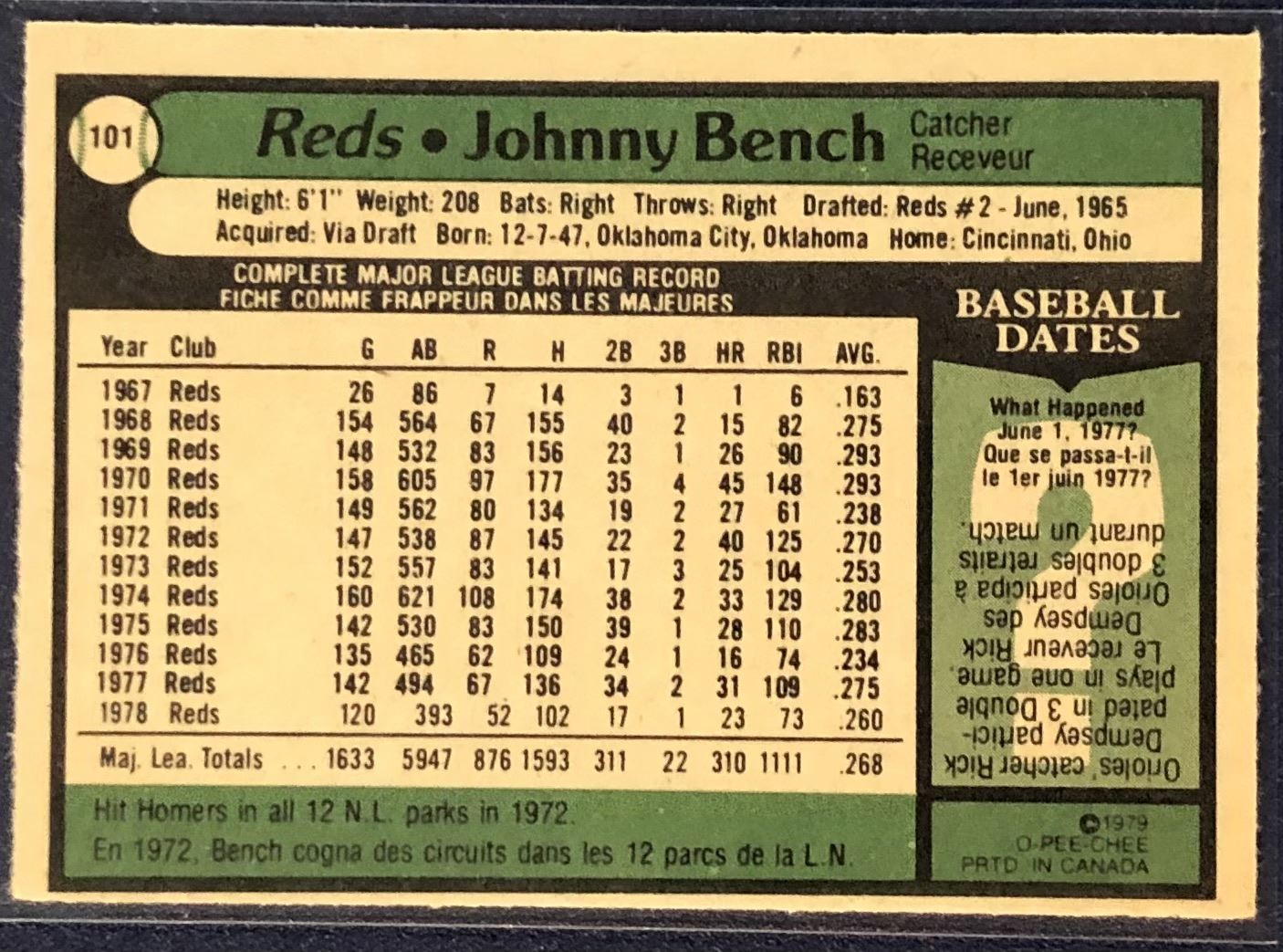Lot 1000 1979 O-PEE-CHEE JOHNNY BENCH (HOF)