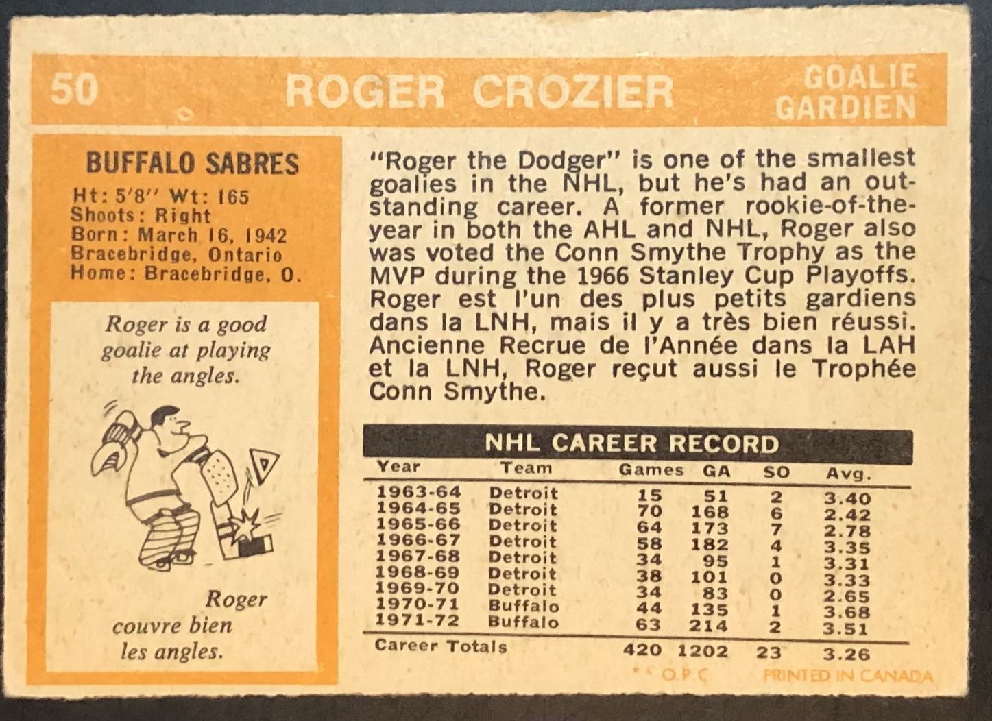 Lot 1012 1972-73 O-PEE-CHEE ROGER CROZIER (HOF)