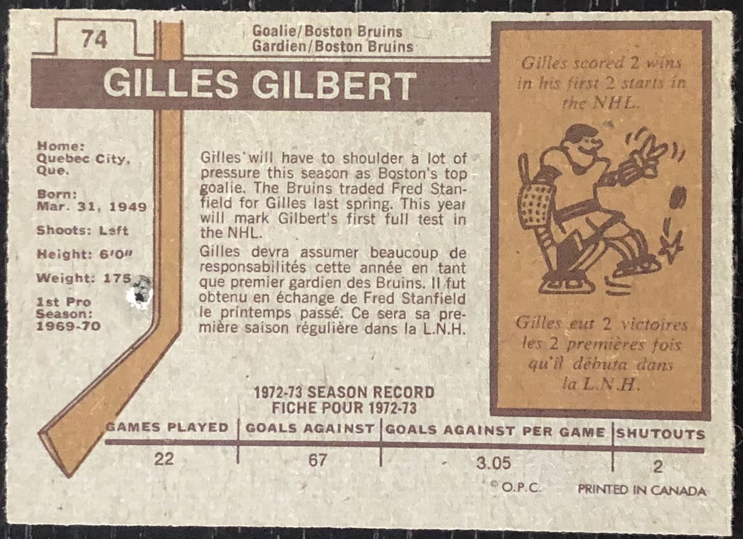 Lot 1028 1973-74 TOPPS GILLES GILBERT ROOKIE CARD