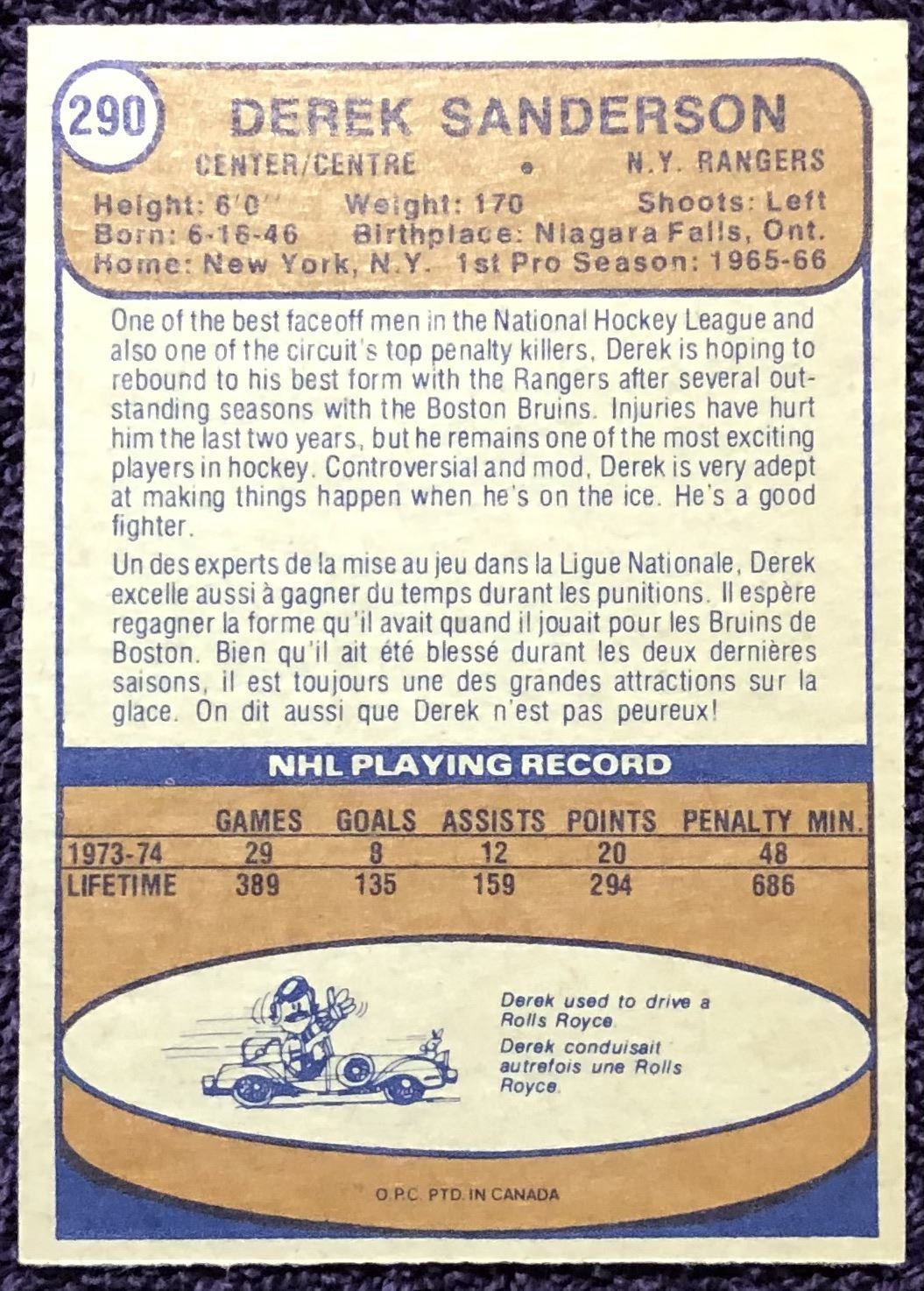 Lot 1032 1974-75 O-PEE-CHEE DEREK SANDERSON