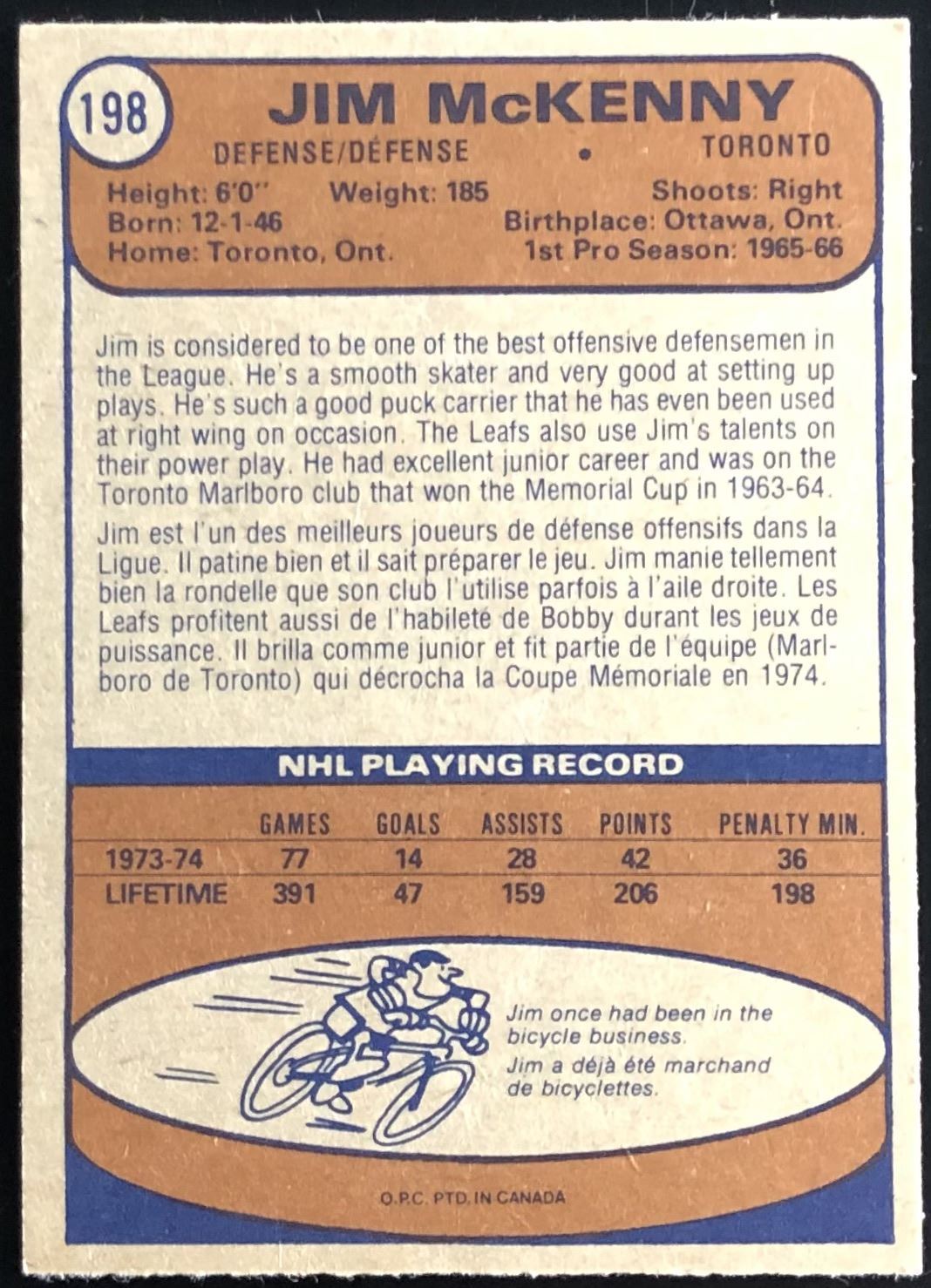 Lot 1036 1974-75 O-PEE-CHEE JIM McKENNY