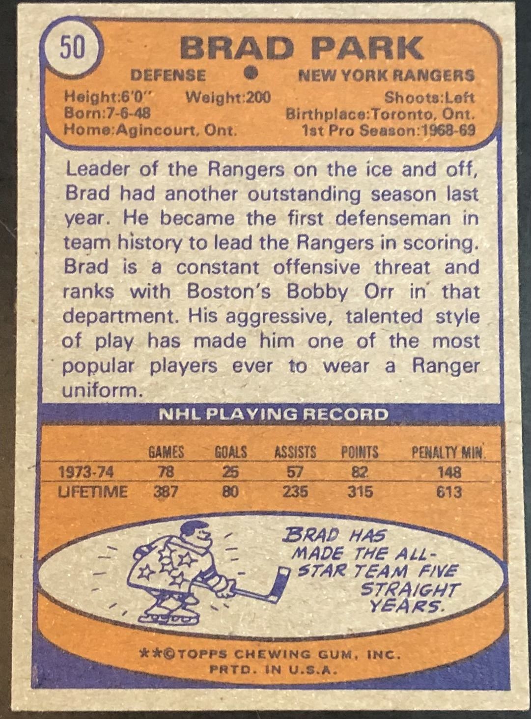 Lot 1041 1974-75 TOPPS BRAD PARK (HOF)