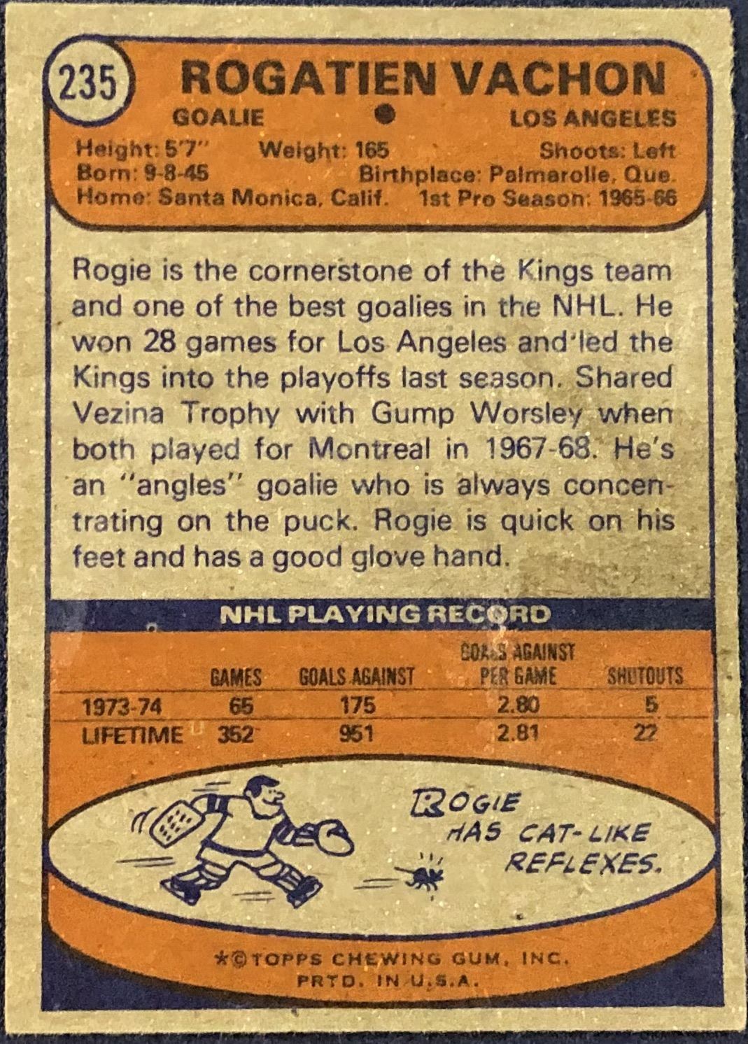 Lot 1045 1974-75 TOPPS ROGIE VACHON (HOF)