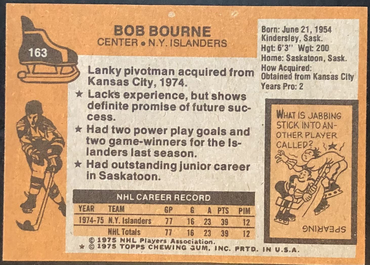 Lot 1053 1975-76 NHL TOPPS BOB BOURNE ROOKIE CARD