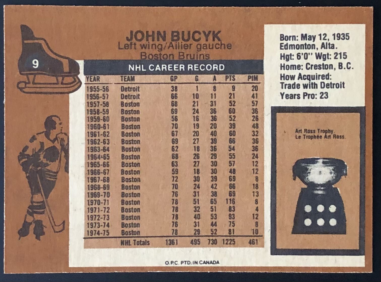 Lot 1065 1975-76 O-PEE-CHEE JOHNNY BUCYK (HOF)