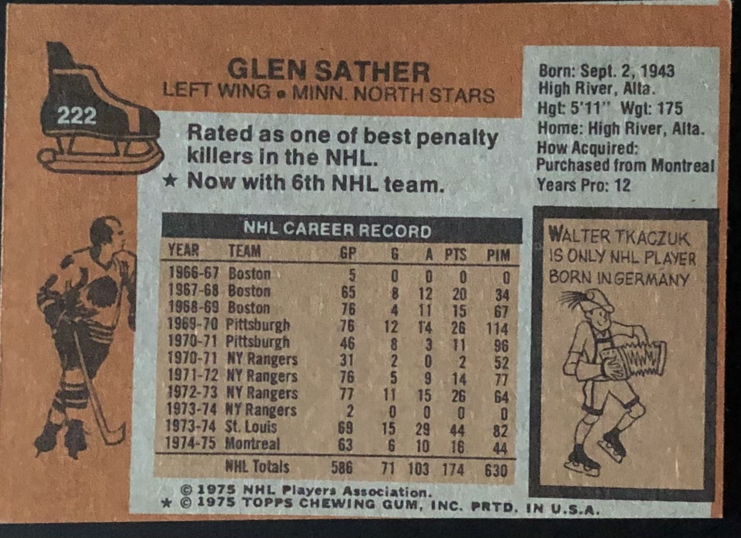 Lot 1073 1975-76 TOPPS GLEN SATHER (HOF)