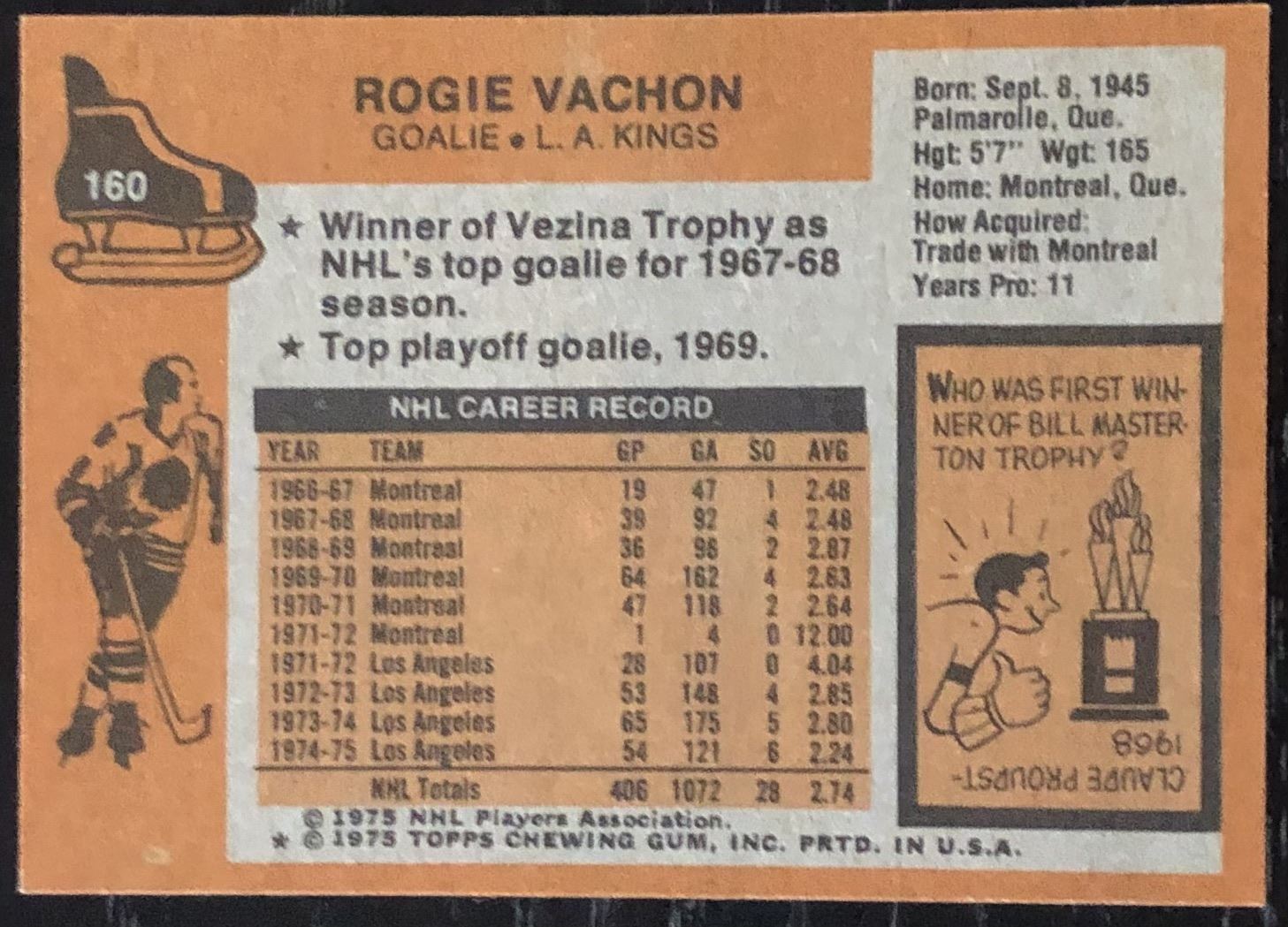 Lot 1074 1975-76 TOPPS ROGIE VACHON (HOF)
