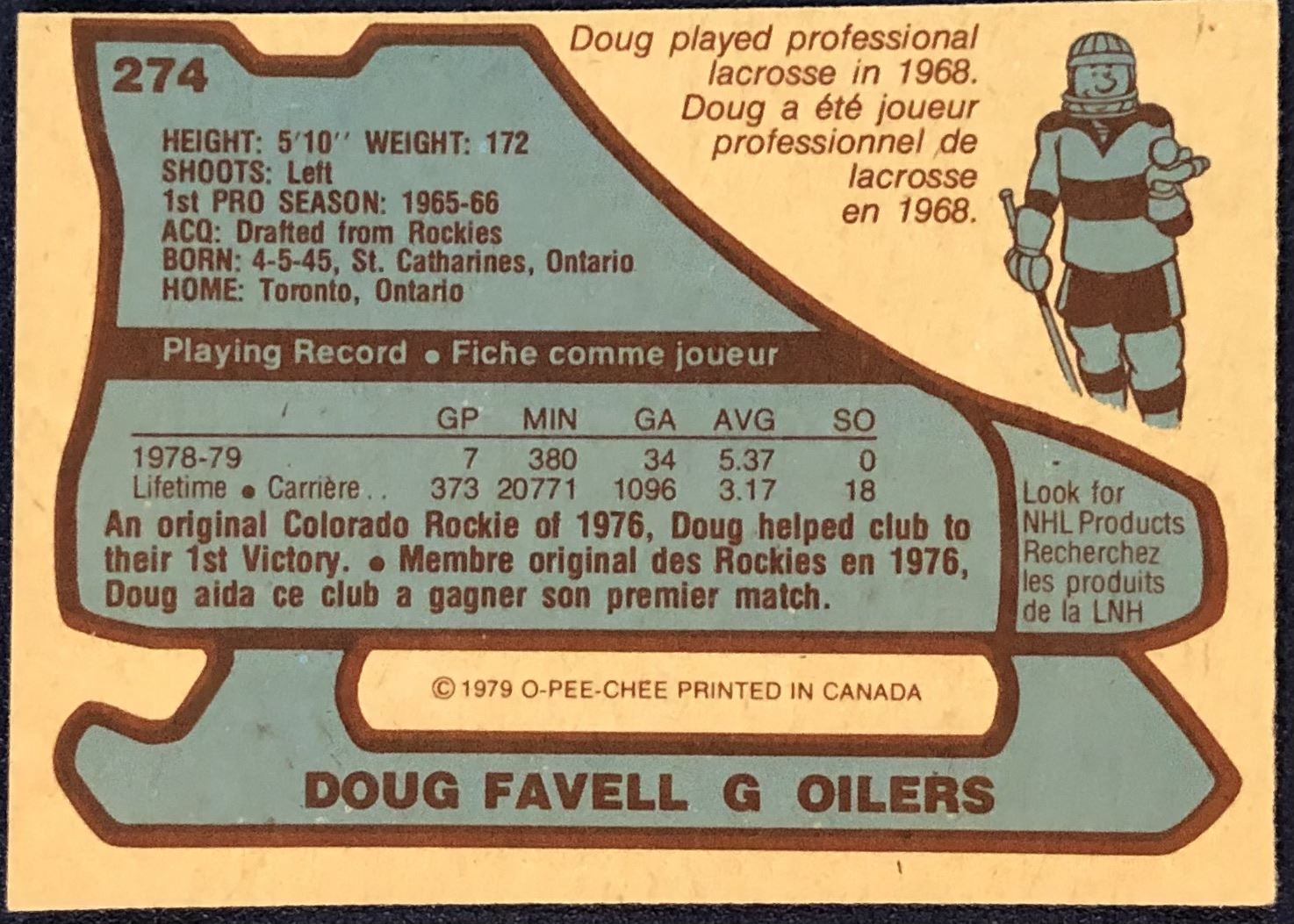 Lot 1135 1979-80 O-PEE-CHEE DOUG FAVELL