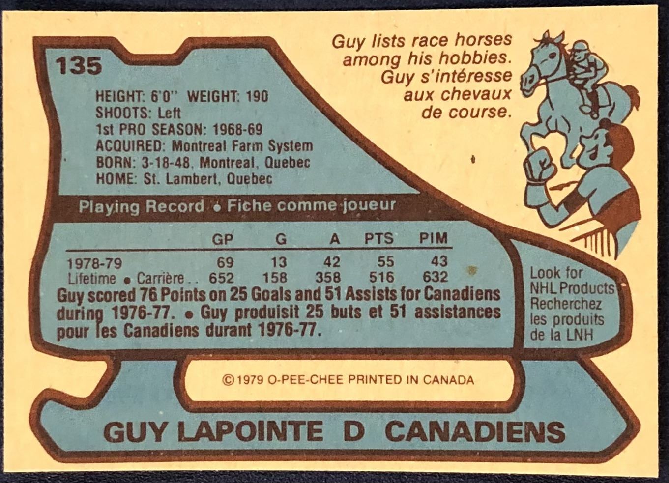 Lot 1154 1979-80 O-PEE-CHEE GUY LAPOINTE (HOF)