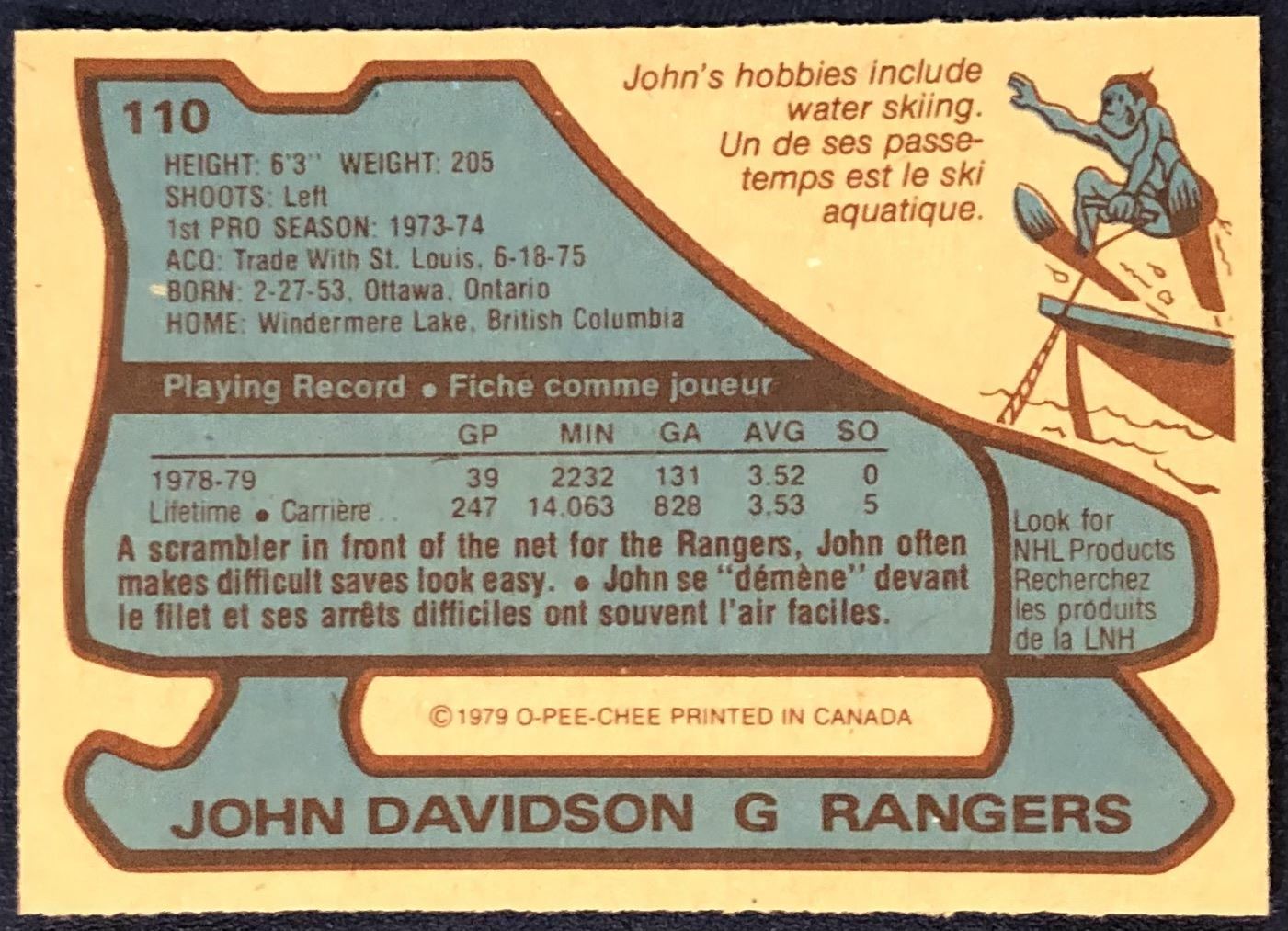 Lot 1161 1979-80 O-PEE-CHEE JOHN DAVIDSON (HOF)