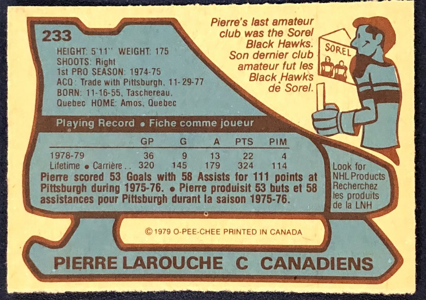 Lot 1163 1979-80 O-PEE-CHEE PIERRE LAROUCHE