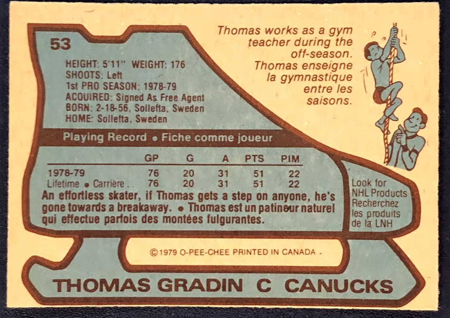 Lot 1214 1979-80 O-PEE-CHEE THOMAS GRADIN ROOKIE CARD