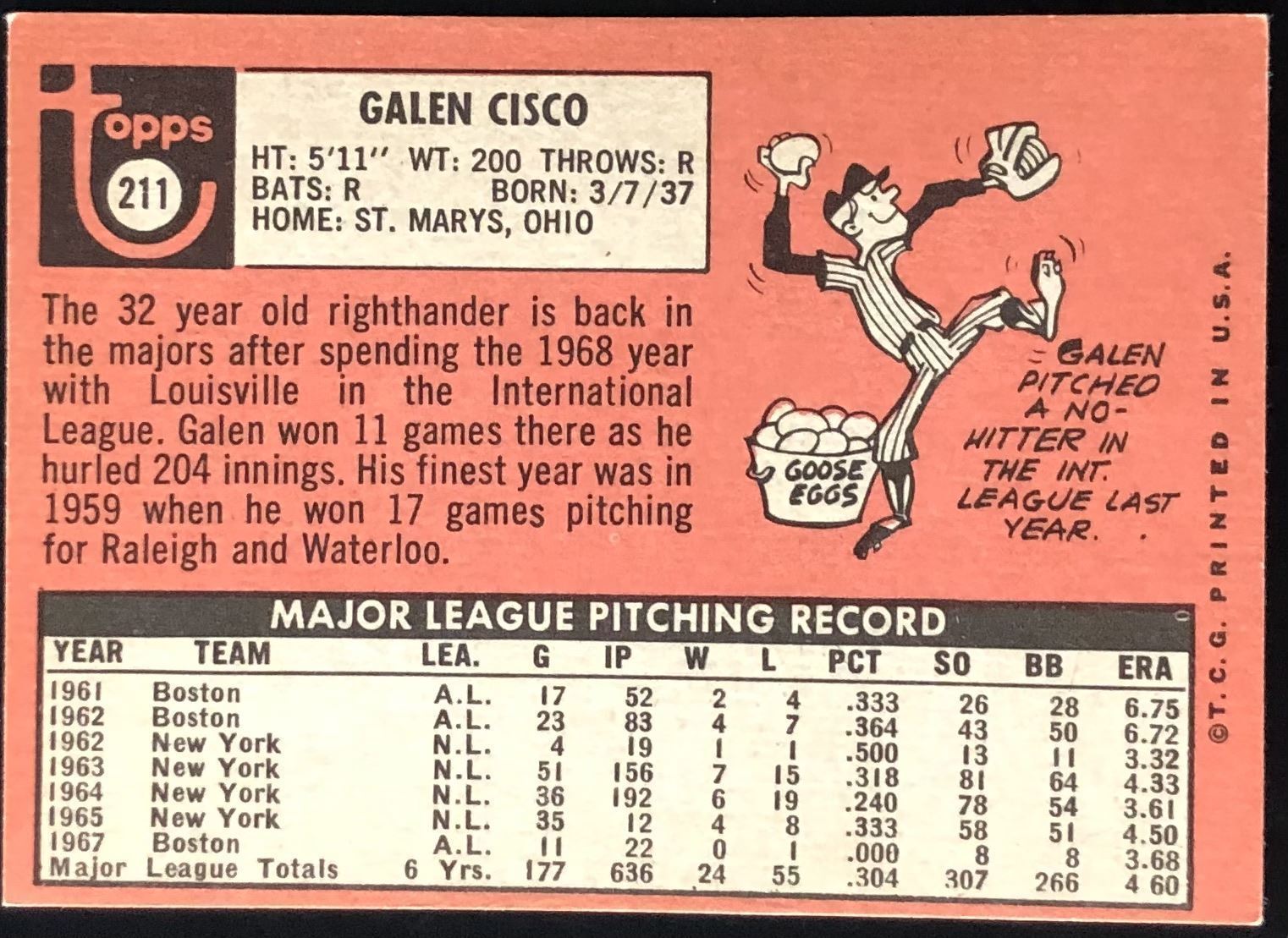 Lot 1228 1968 TOPPS GALEN CISCO