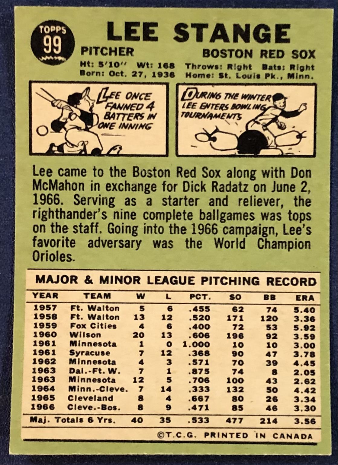 Lot 1237 1967 O-PEE-CHEE LEE STANGE