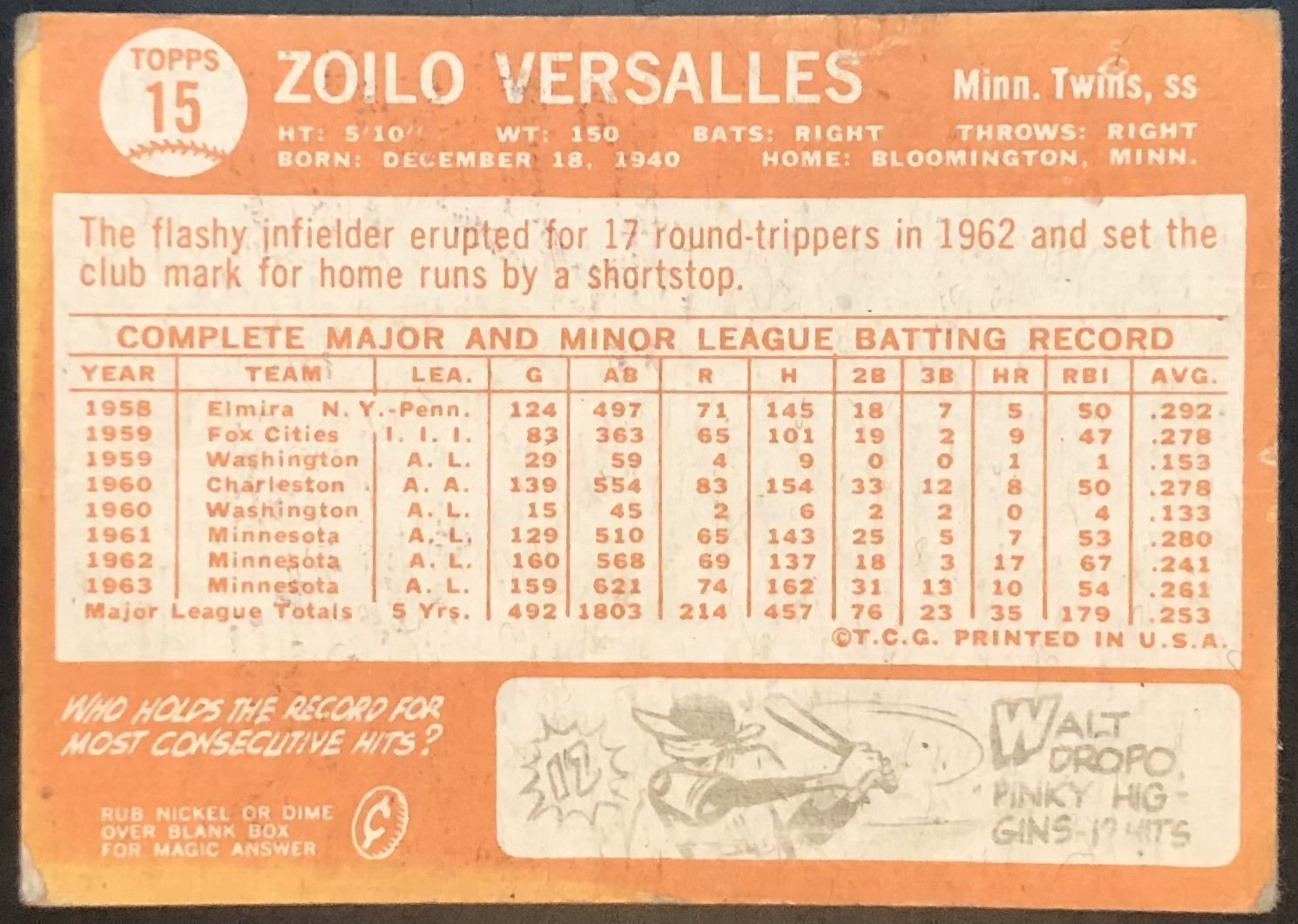 Lot 1261 1964 TOPPS ZOILO VERSALLES