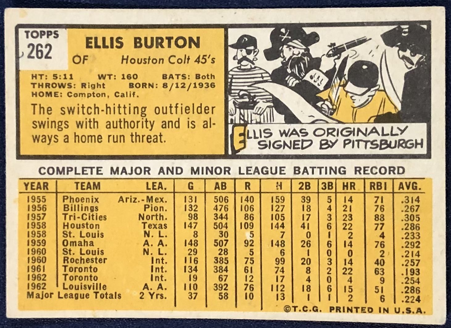 Lot 1278 1963 TOPPS ELLIS BURTON ROOKIE CARD