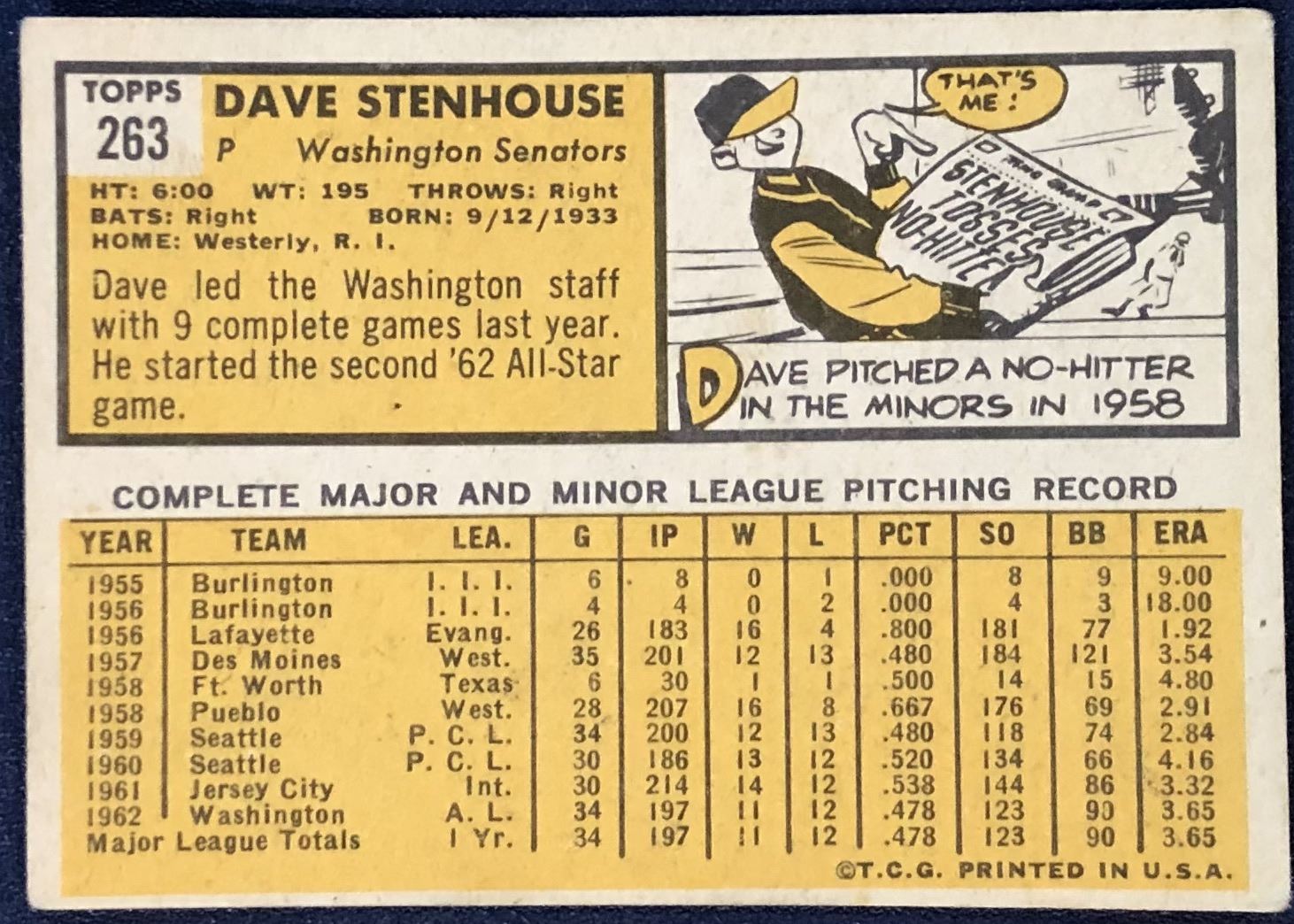 Lot 1281 1963 TOPPS DAVE STENHOUSE ROOKIE CARD