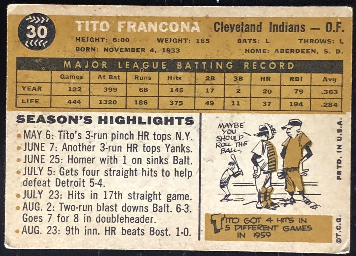 Lot 1299 1960 TOPPS TITO FRANCONA