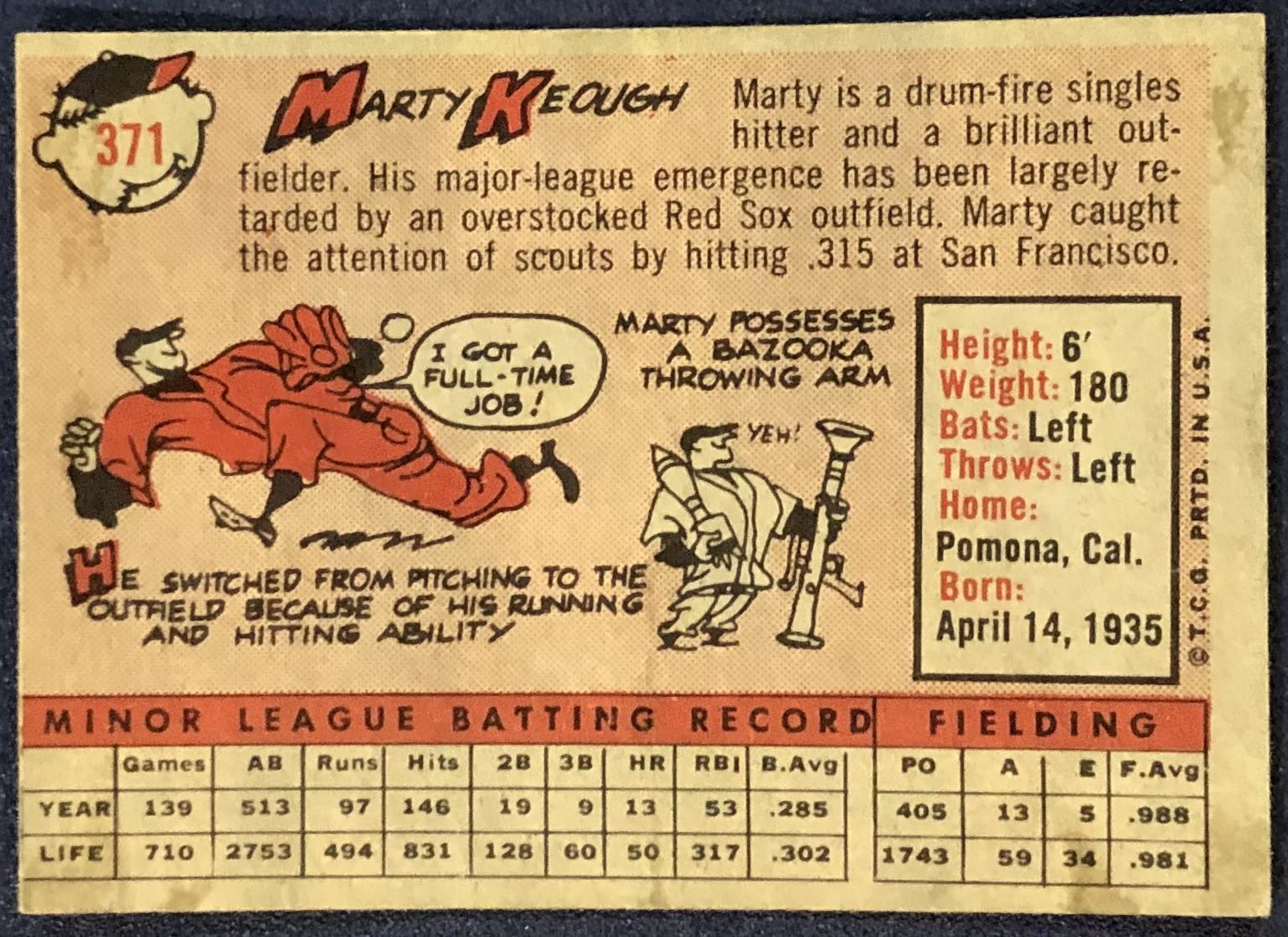 Lot 1306 1958 TOPPS MARTY KEOUGH