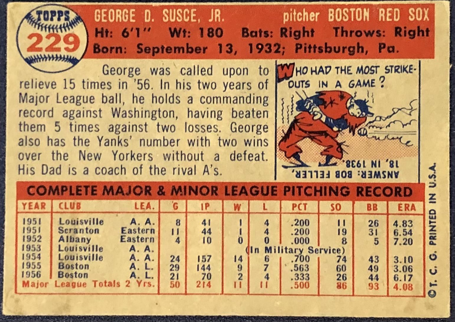 Lot 1316 1957 TOPPS GEORGE SUSCE