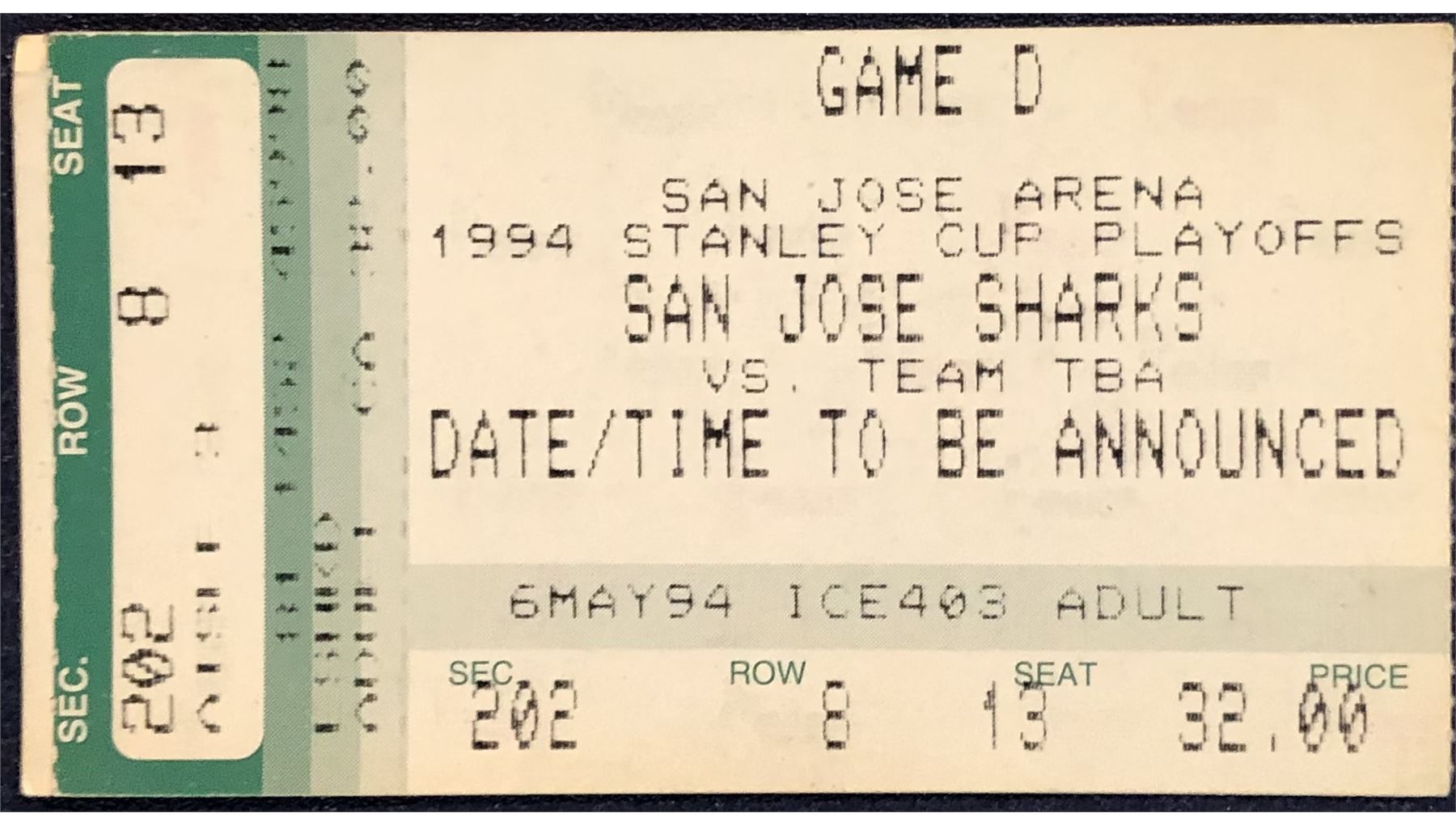 Lot 1375 1994 STANLEY CUP TICKET STUB - TORONTO at SAN JOSE, GAME #3