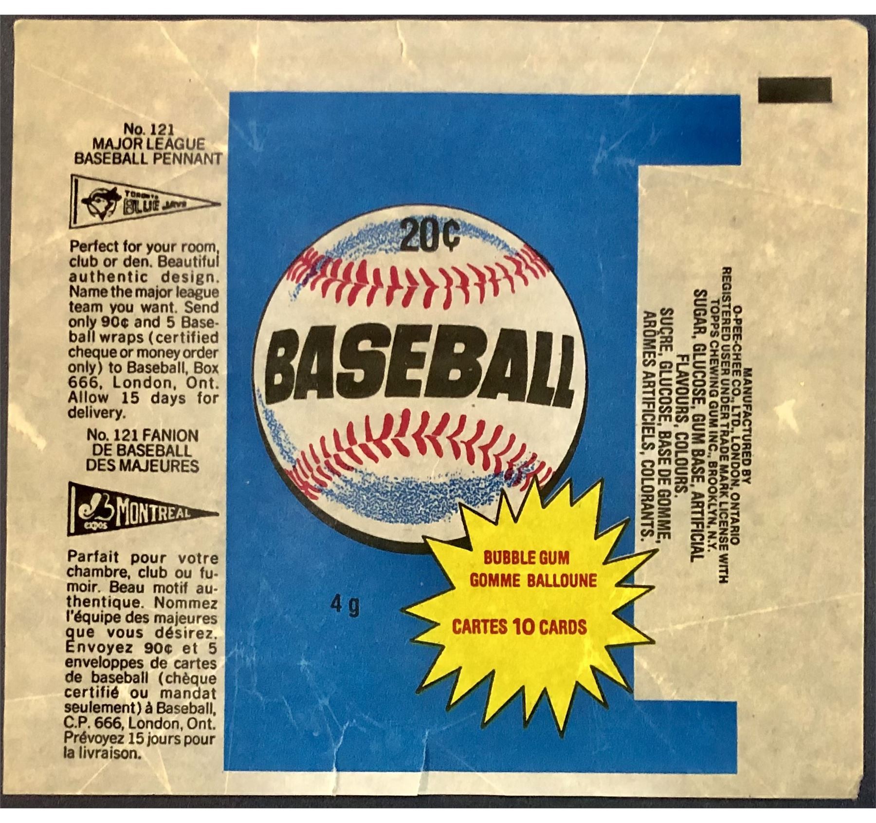 Lot 1405 1980 O-PEE-CHEE BASEBALL WRAPPER
