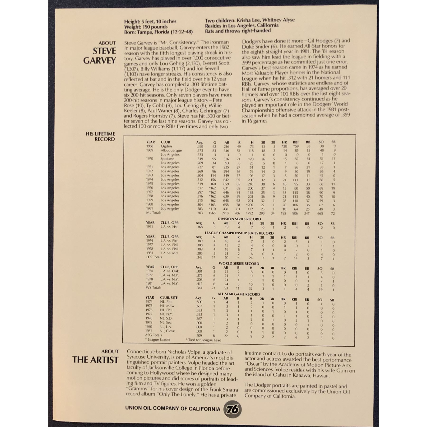 Lot 1436 1982 UNION OIL LOS ANGELES DODGERS - STEVE GARVEY