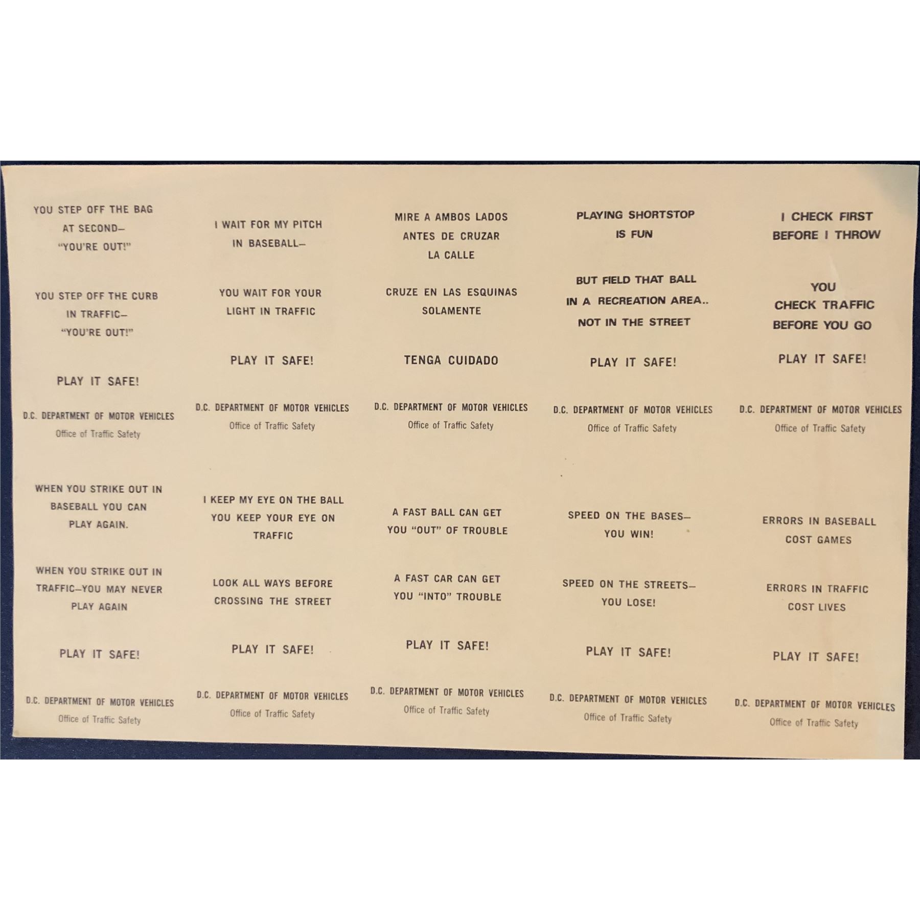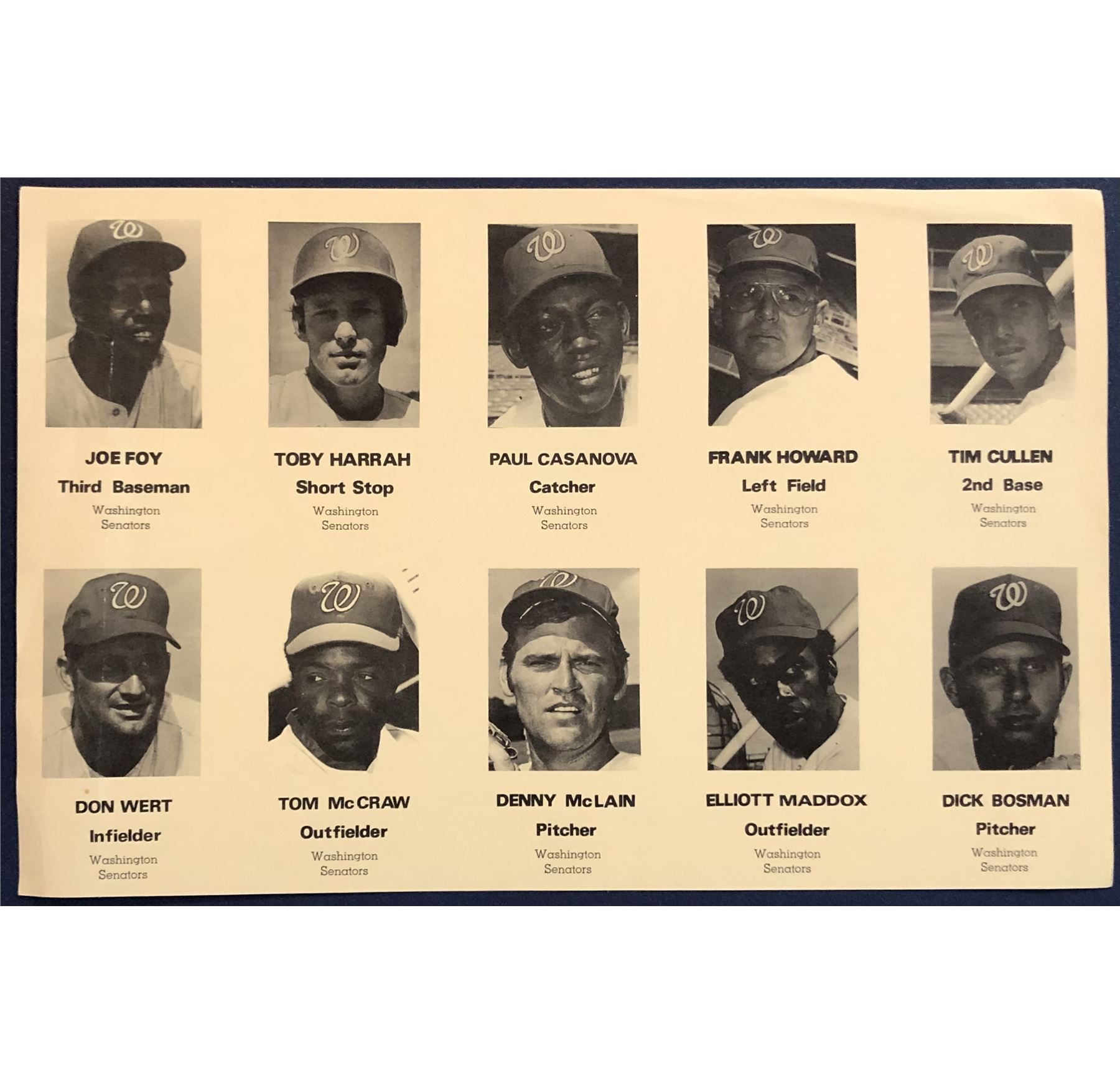 1971 WASHINGTON D.C. DMV SENATORS SET - UNCUT