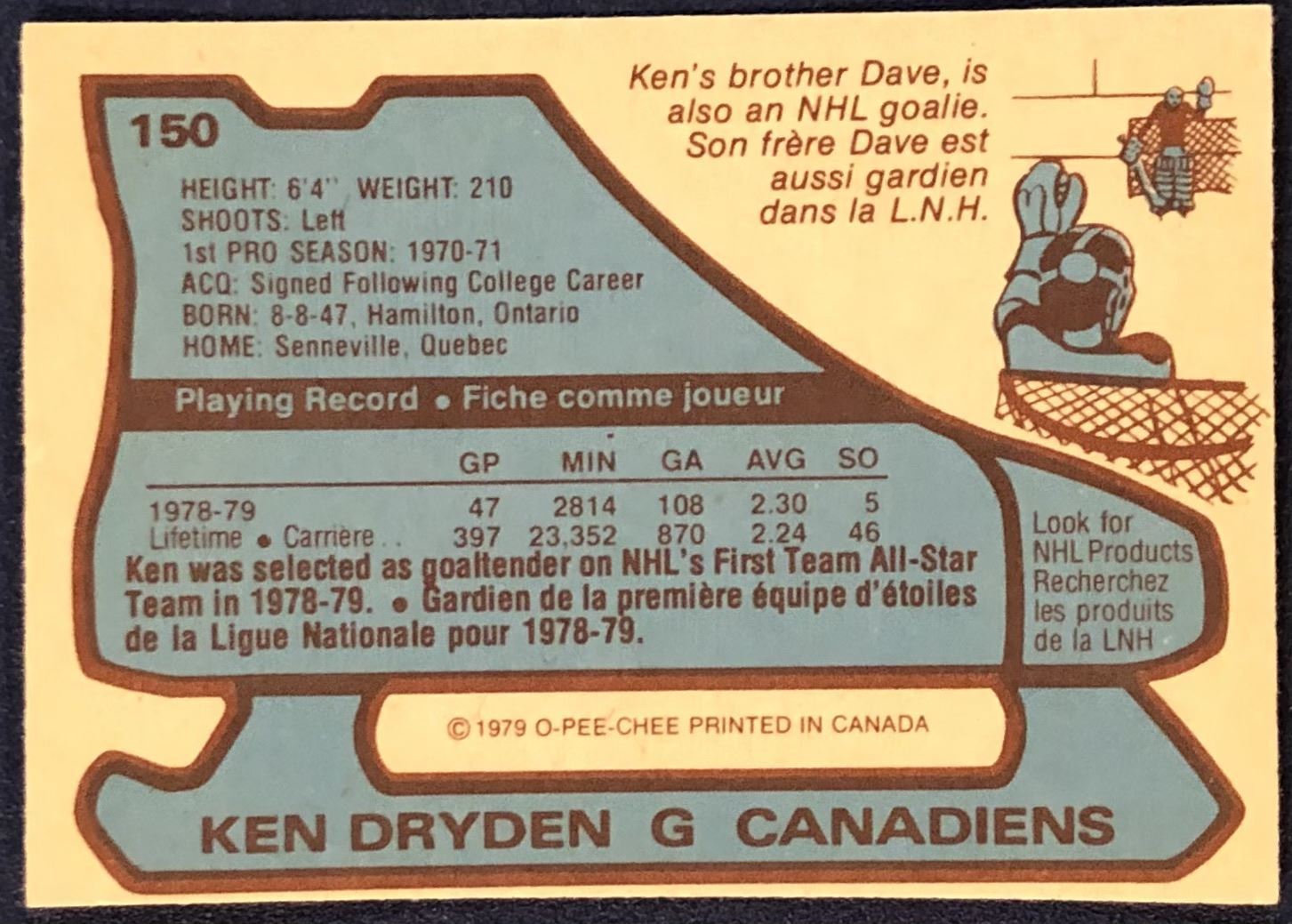 Lot 1475 1979-80 O-PEE-CHEE KEN DRYDEN (HOF)