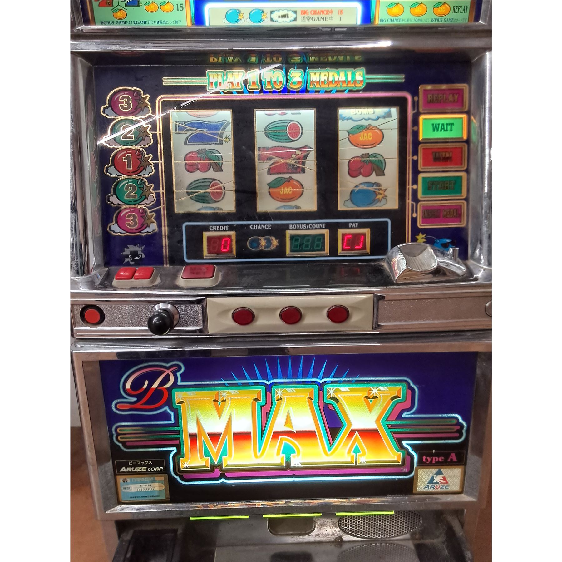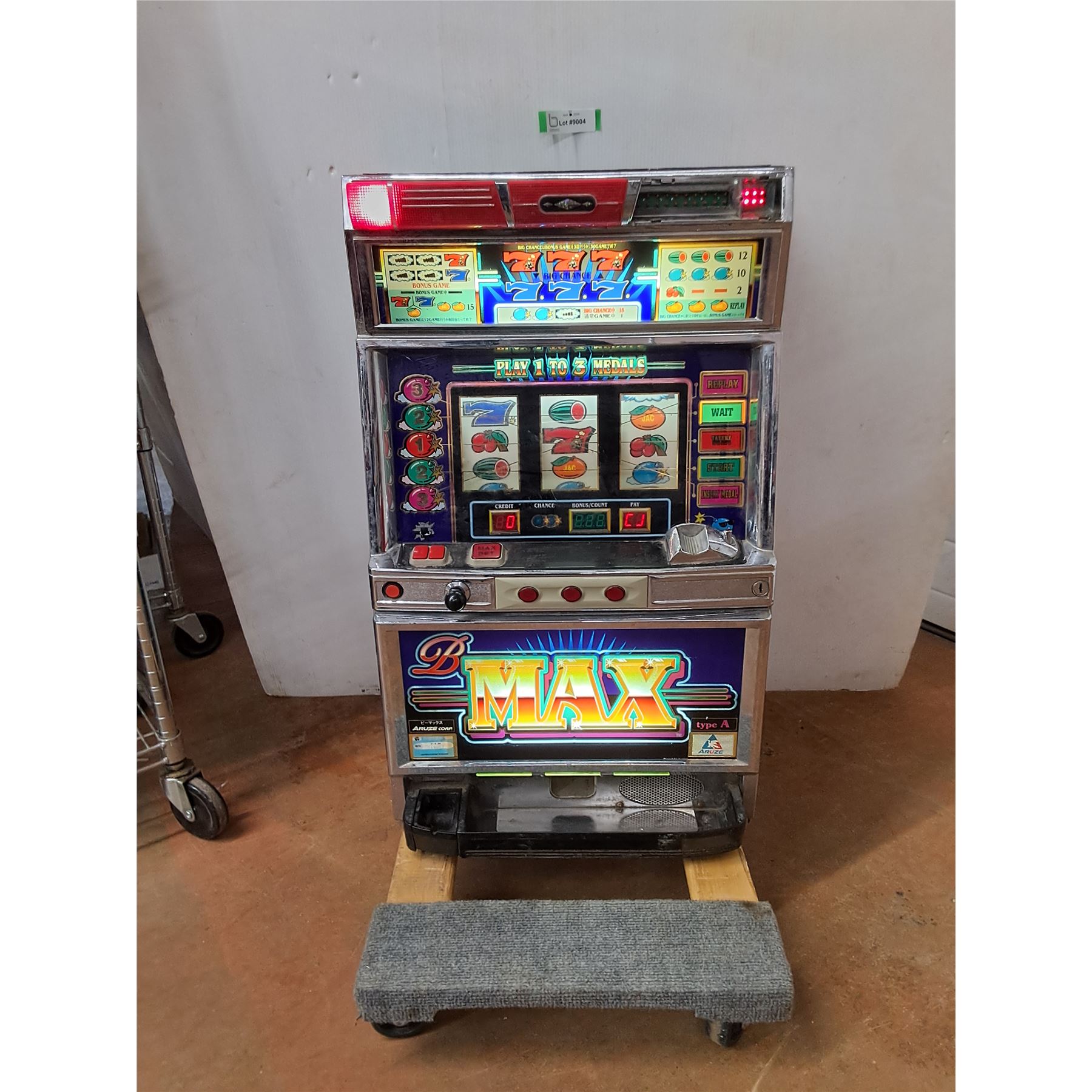 Lot 9004 * Aruze B-Max Pachisio Slot Machine - Powers On - 19x32x14" - CANNOT SHIP/Dolly Not Included