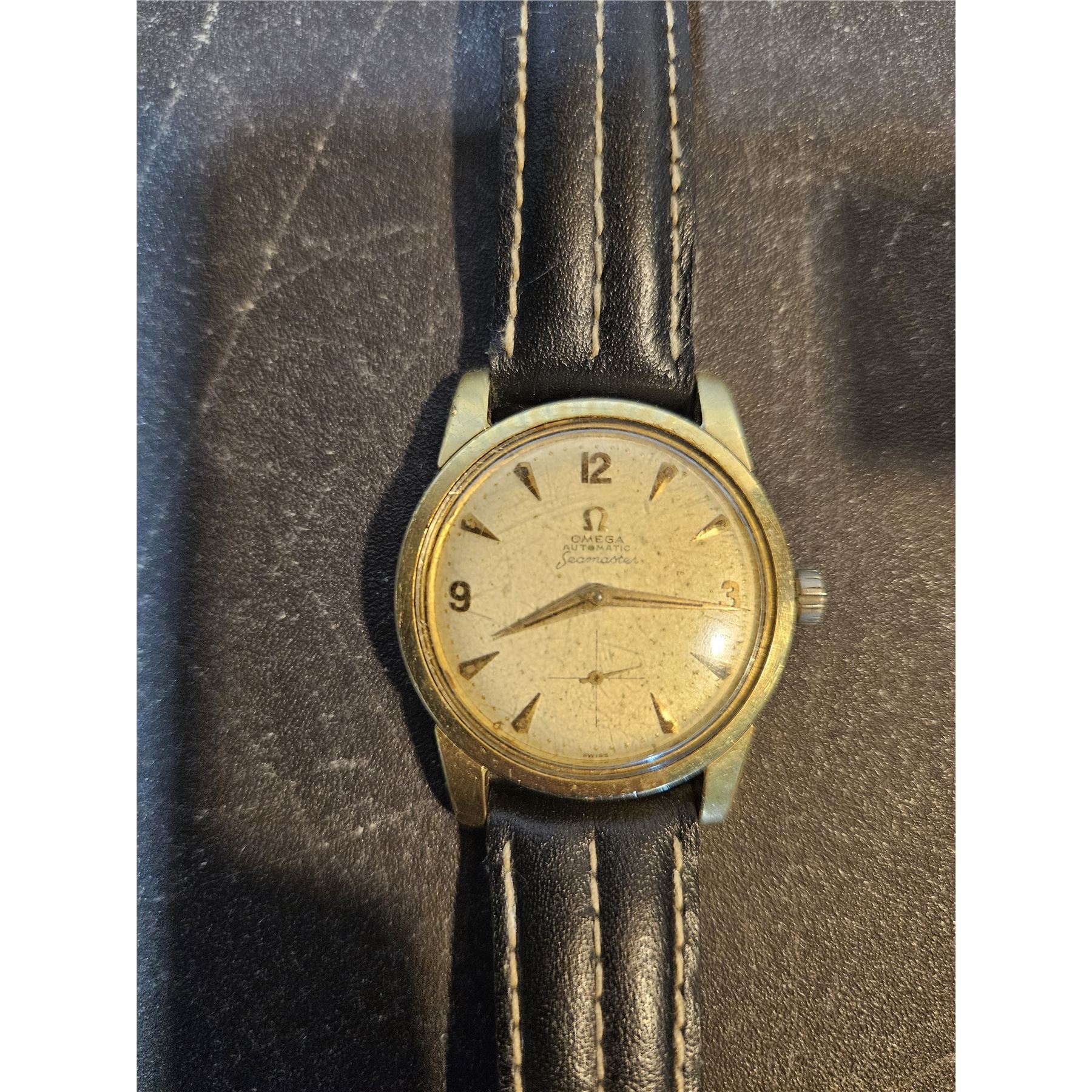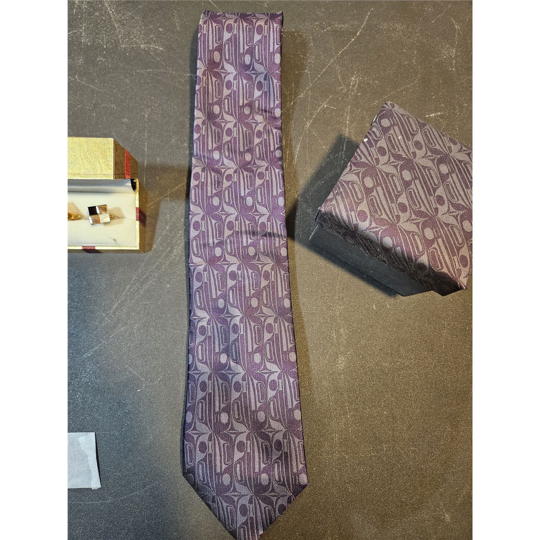 Omega Seamaster Watch, Golden Tree Cufflinks & Purple Native Tie by Corey Bulpitt