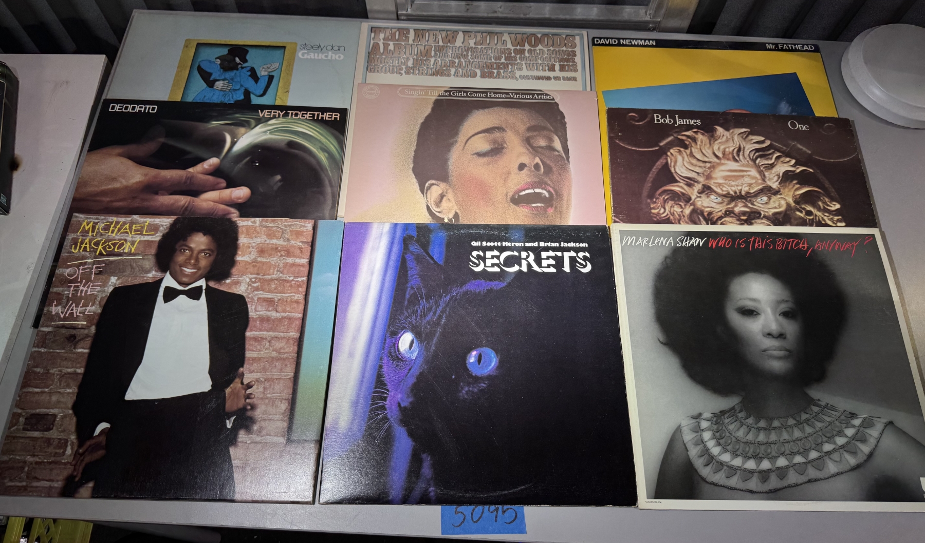 Michael Jackson Off the Wall, Gil Scott and Brian Jackson, Marlena Shay, Deodato Very Together, Singing til the girls come home Vocalists, Bob James, Steely Dan Gaucho, The New Phil Woods, David Newman Mr Fathead - untested