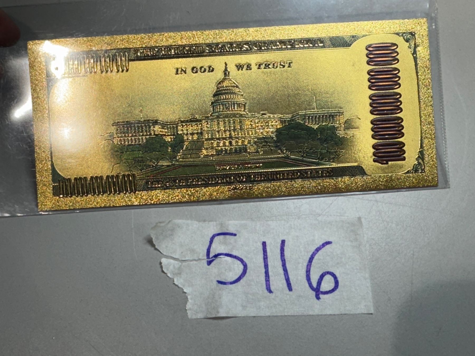 Lot 5116 Donald and Melinda Trump Fake Note $100,000,000,000,000