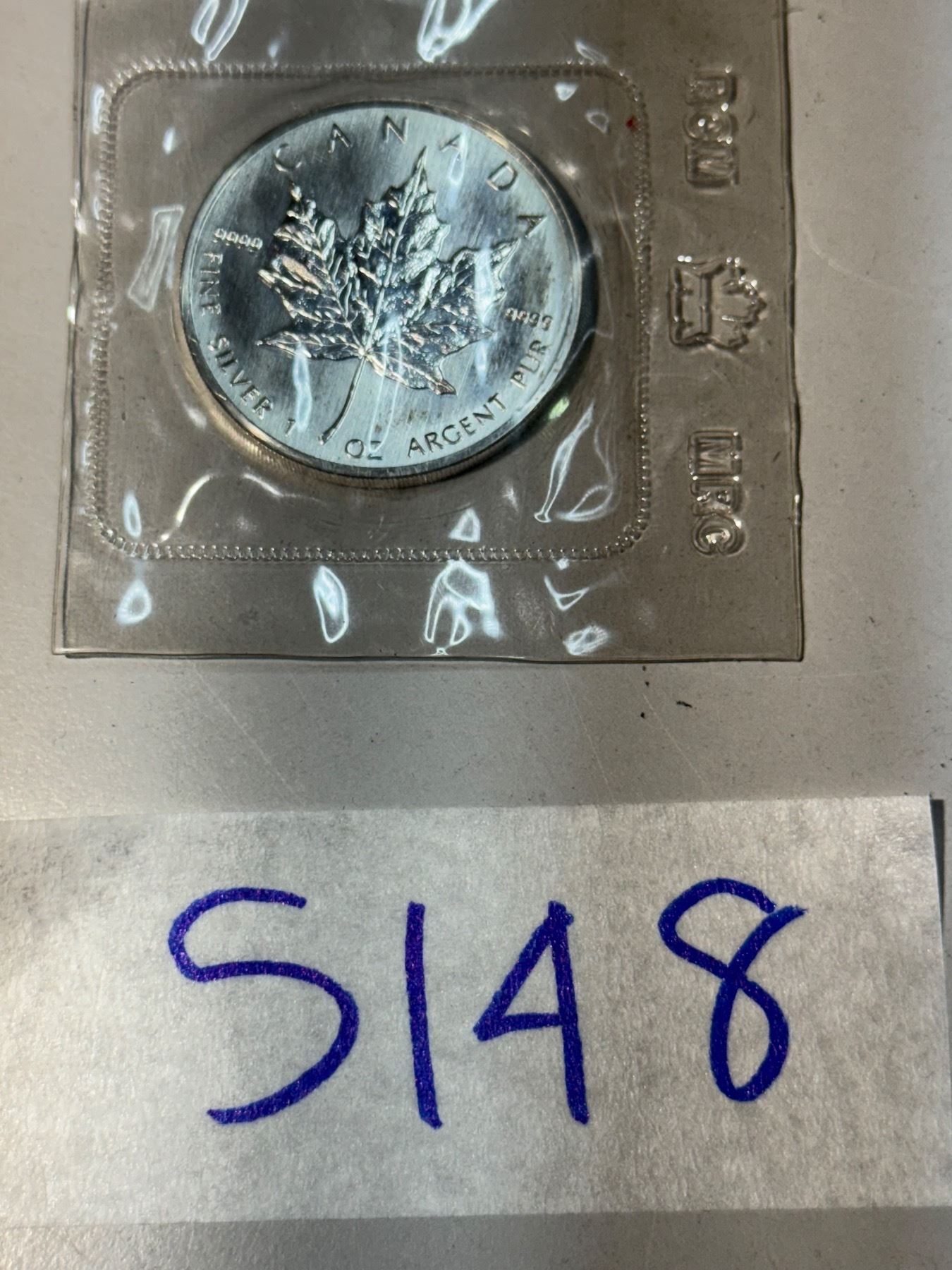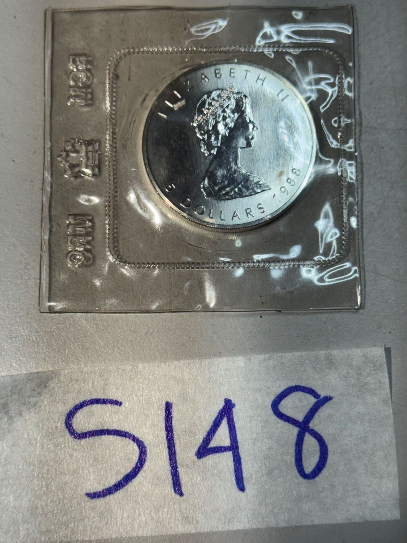 Lot 5148 1988 5 Dollar Coin Fine Silver 1 OZ Canadian