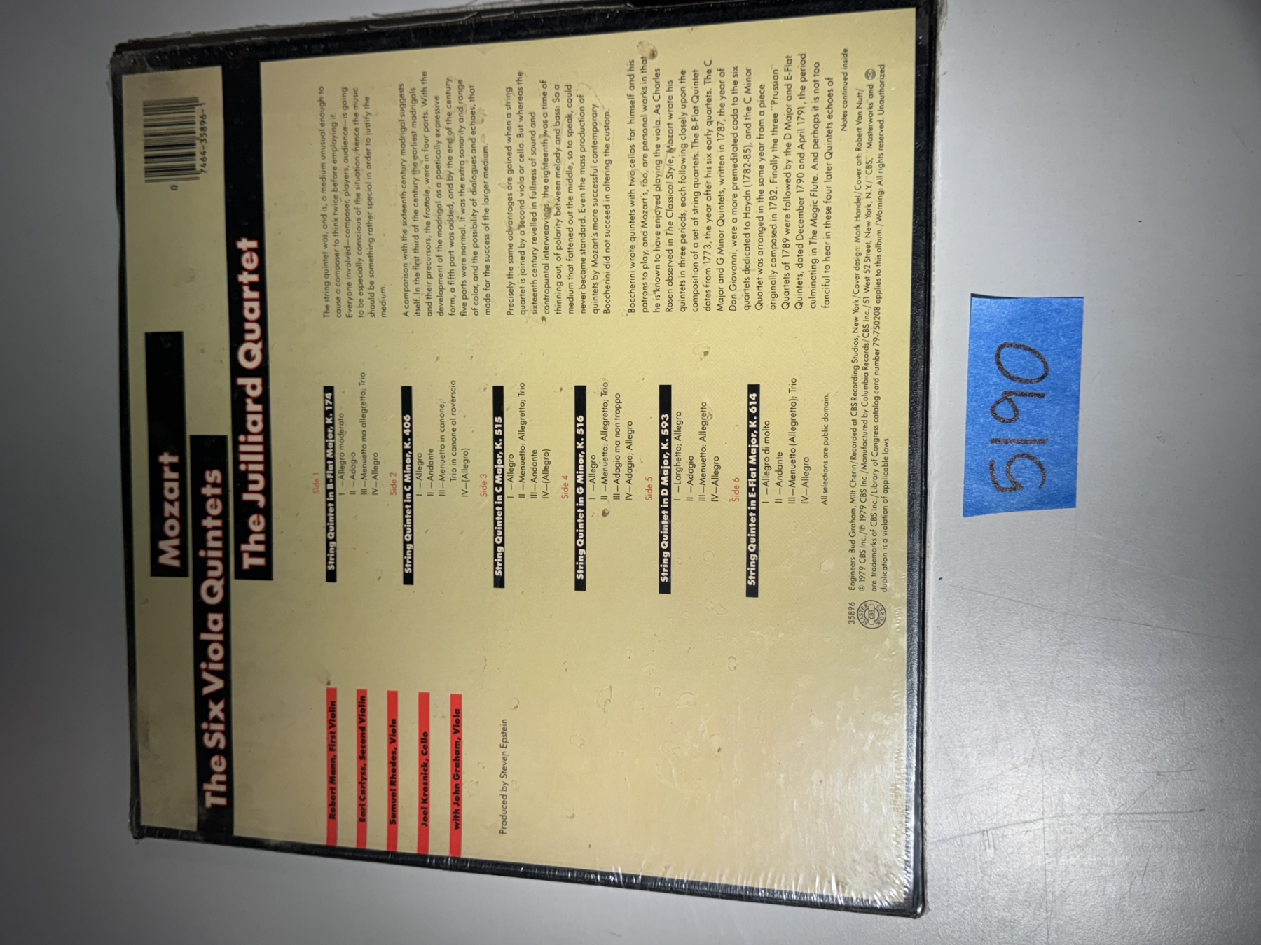 Lot 5190 Mozart Record Box Set - Six Viola Quintets