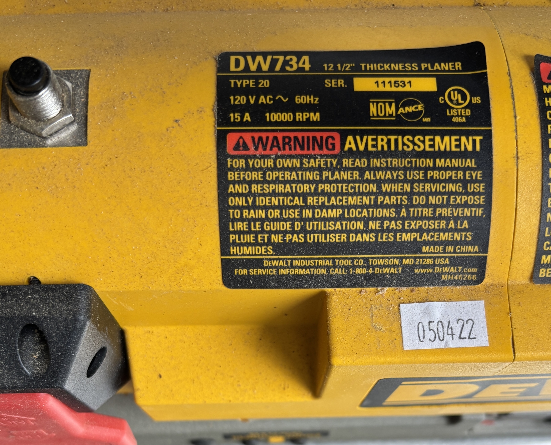 Lot 368 DEWALT 12.5" PLANER W/ STAND