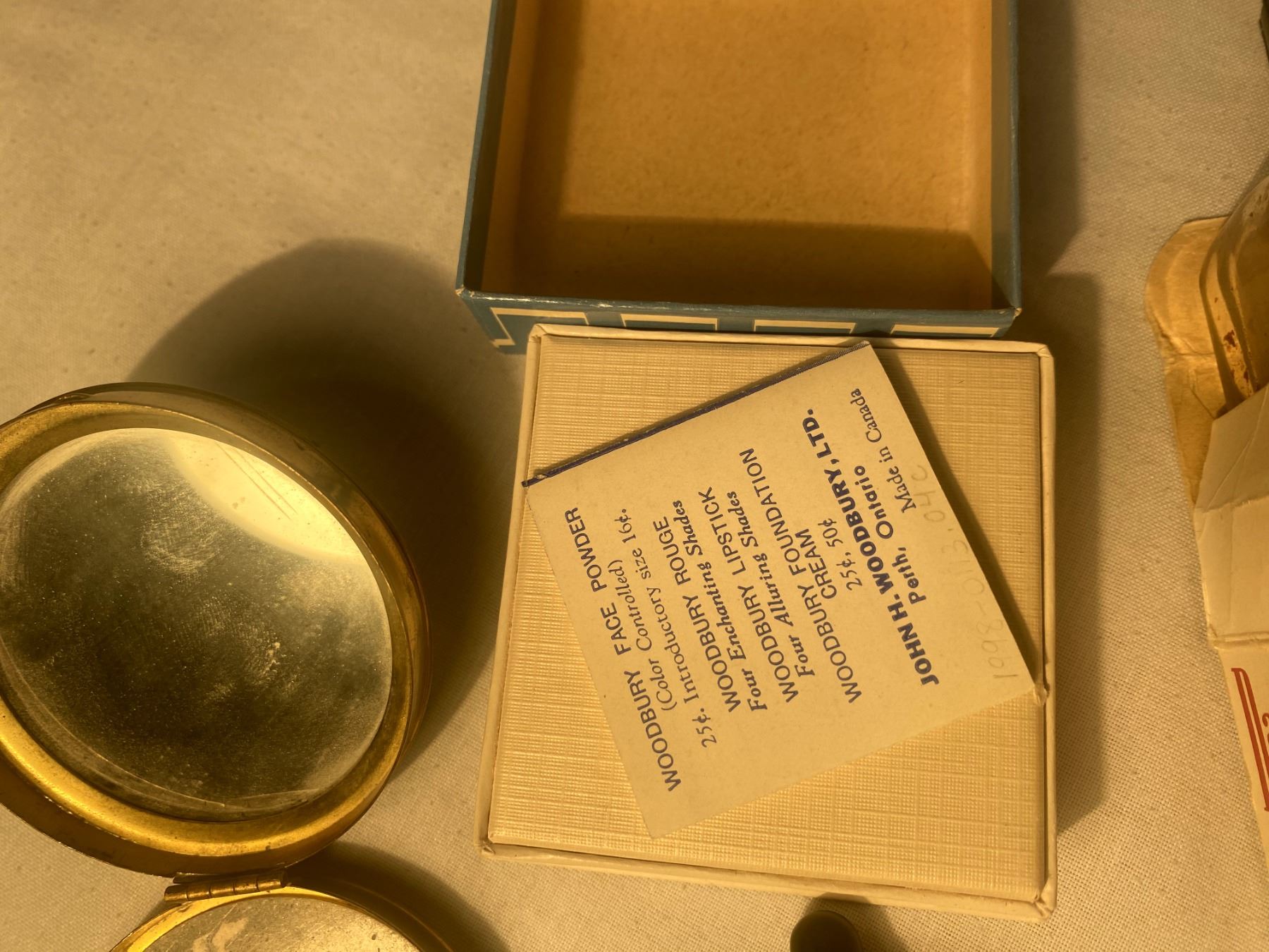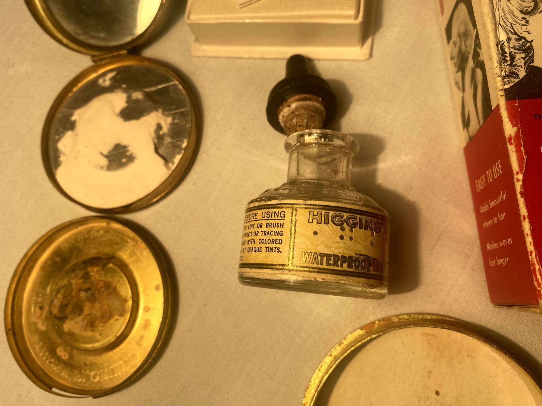 Lot 1015 Vintage Cosmetics, Brass Compact, and Ink Bottle