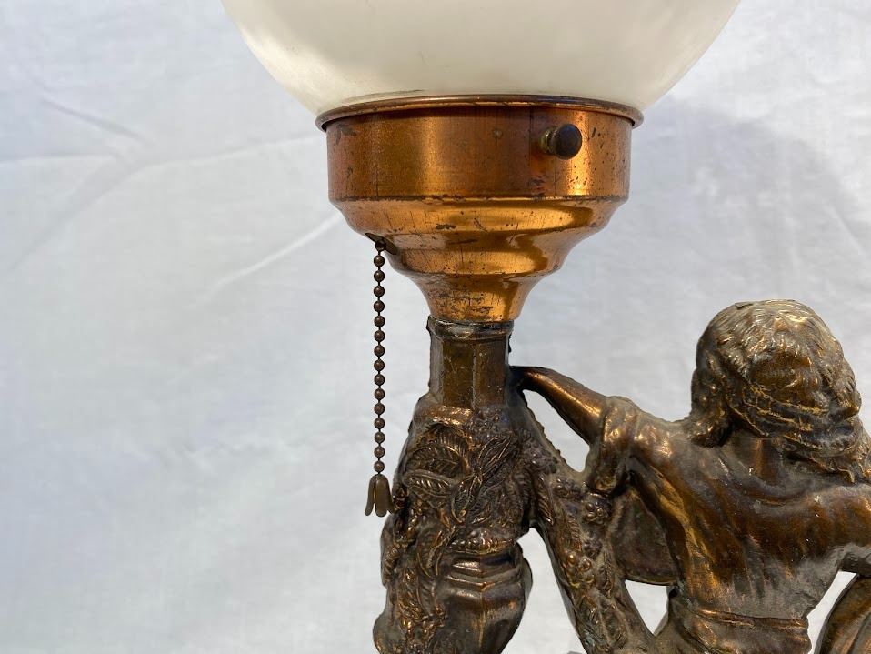 Lot 1023 Vintage Table Lamp - Woman Standing On World