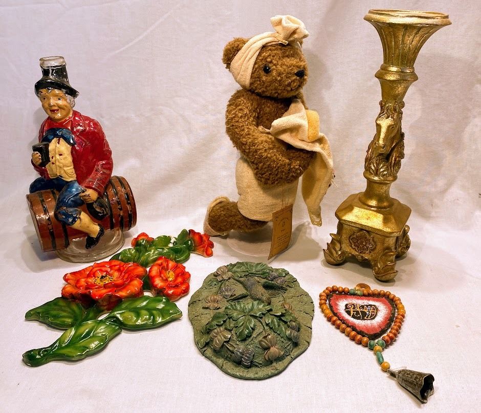 Antique Home Decor - Tibetan Charm Bracelet, Shelby Lane Teddy Bear "Bridget", English Decanter