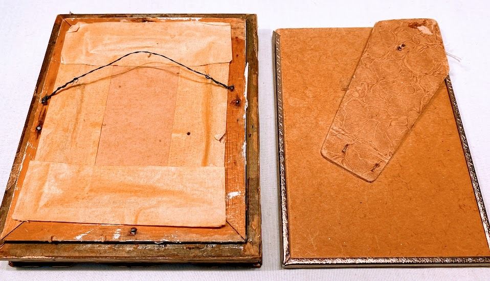 2 Vintage Art Pieces - Native American Scene and Real Dried Flower Botanical Art