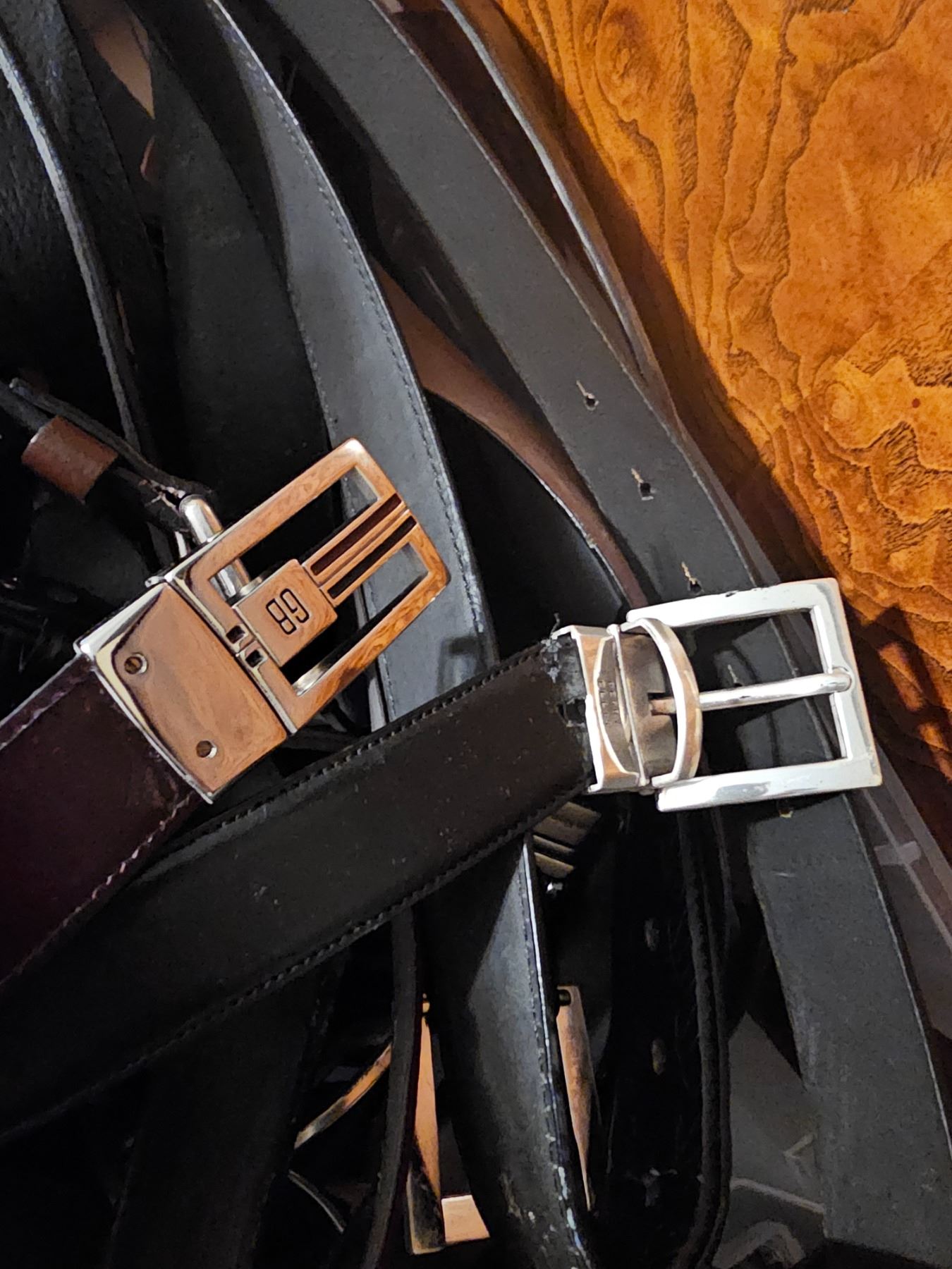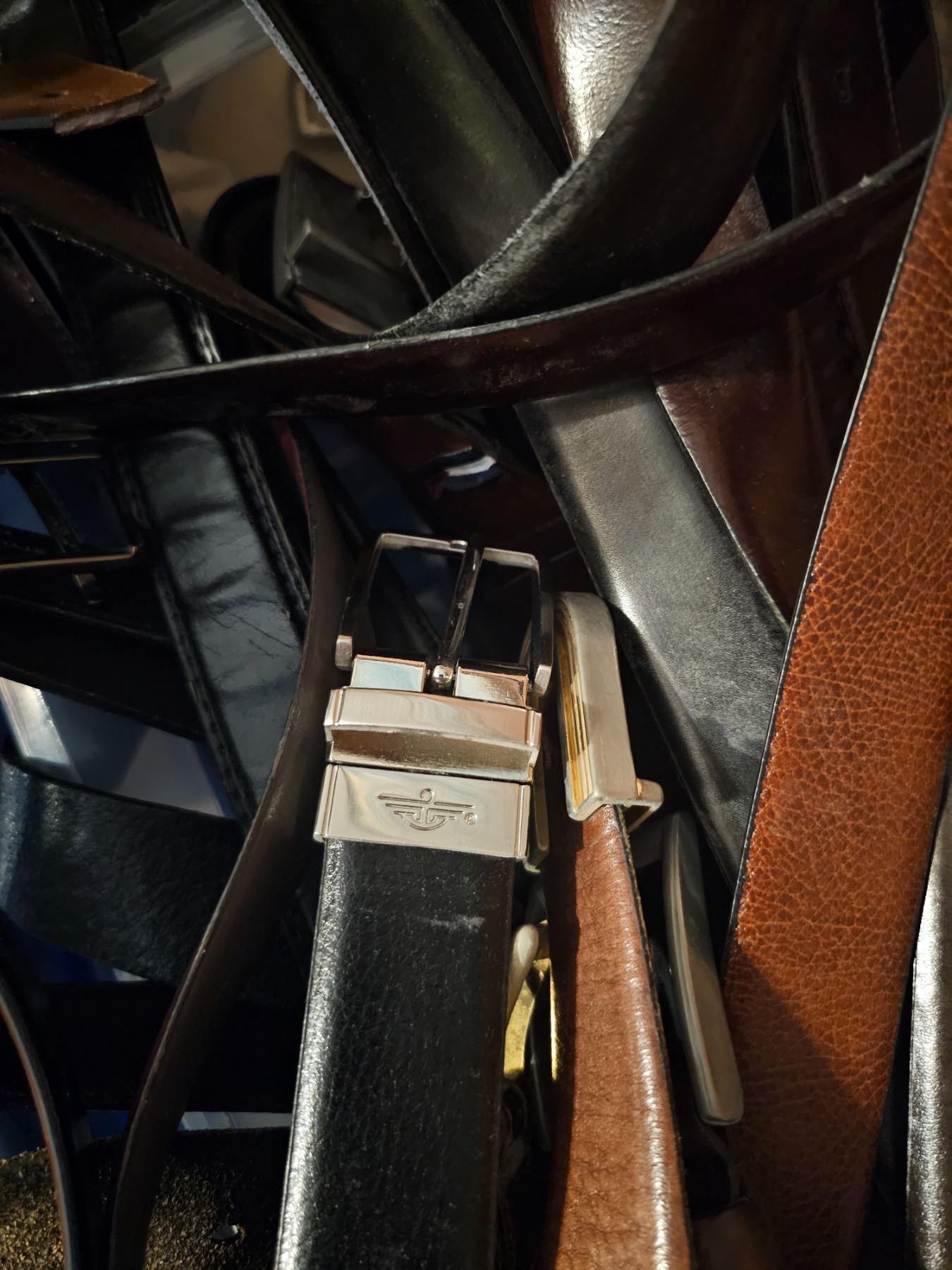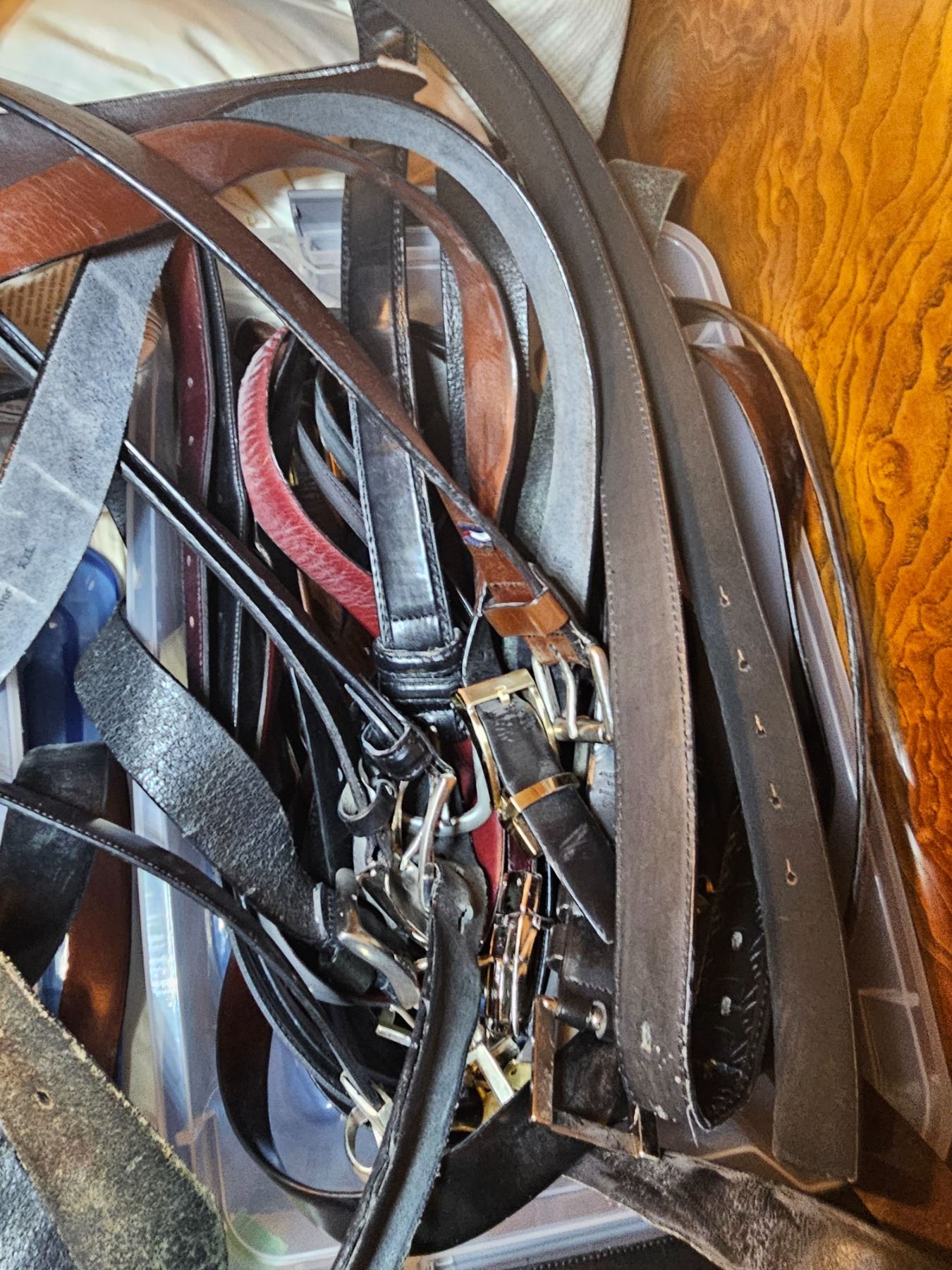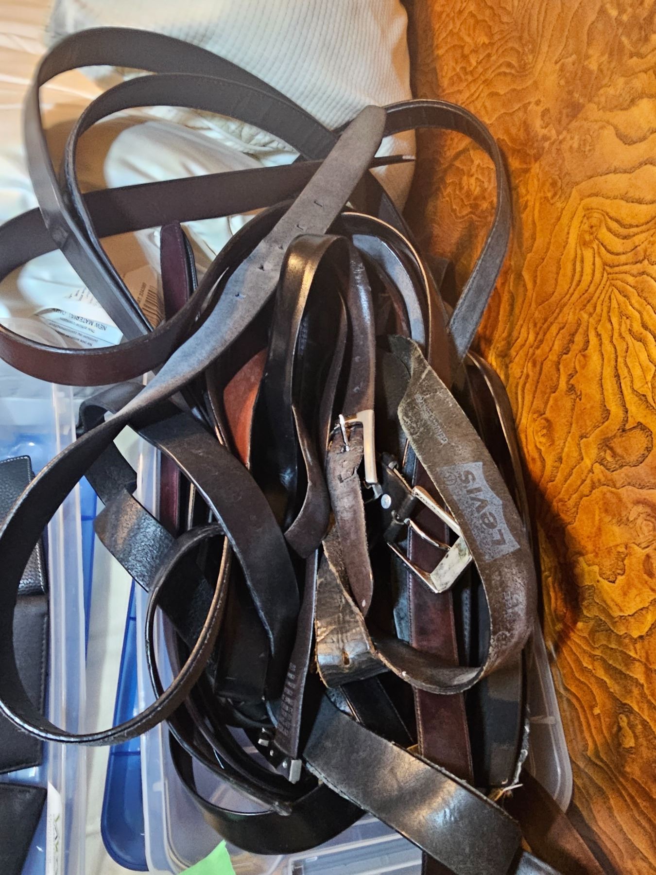 Assortment of men's leather wallets and belts size xxl. Pickup at 9 am