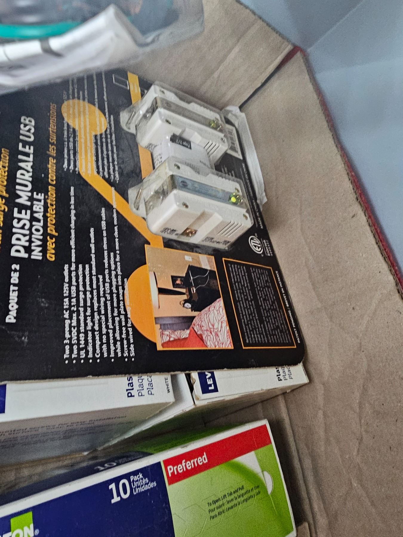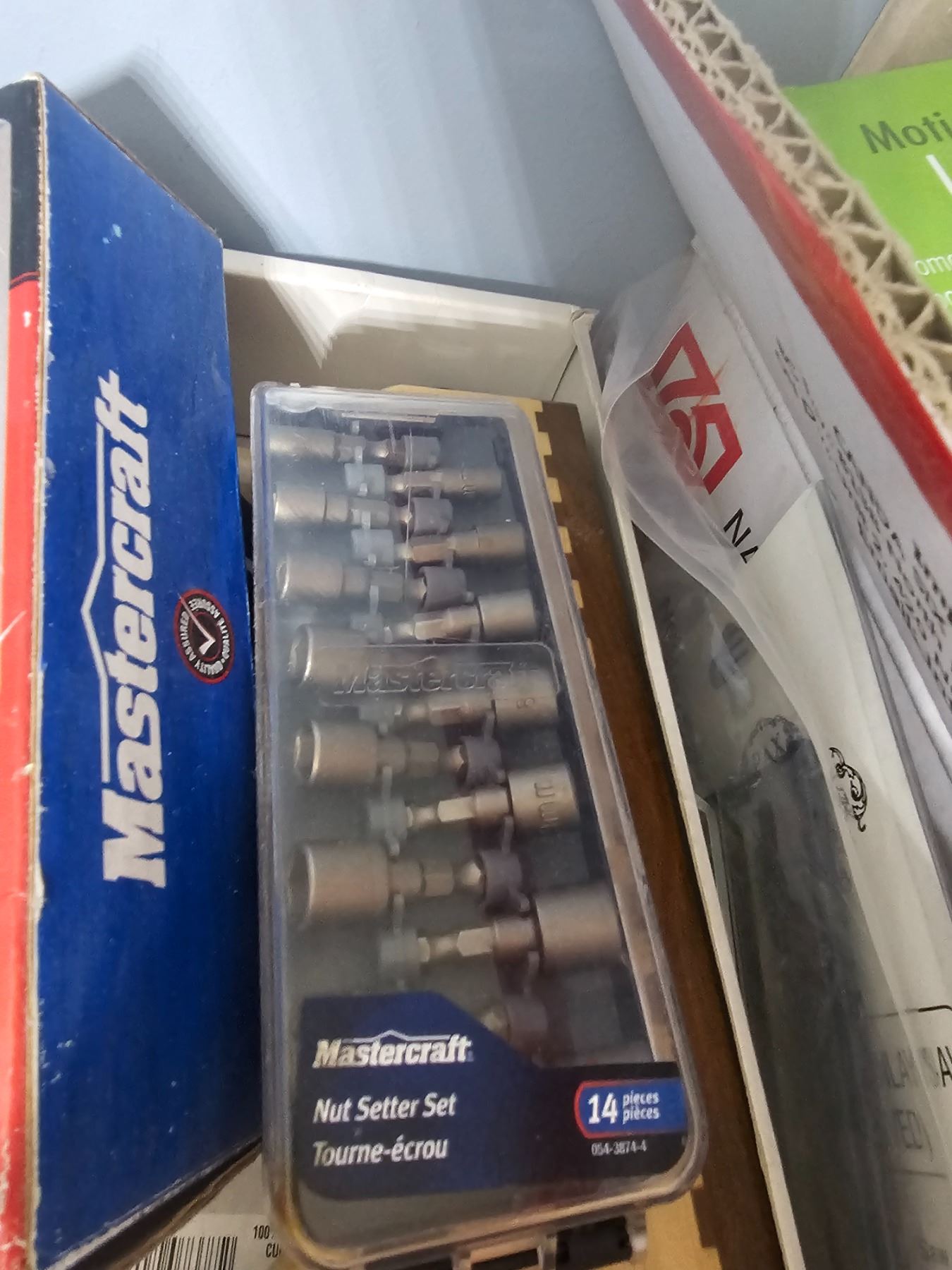 Paint thinner, Plastic sheeting, Mastercraft Nut setter set, Lightswitches. Leviton secora switches and more. Pickup at 9 am