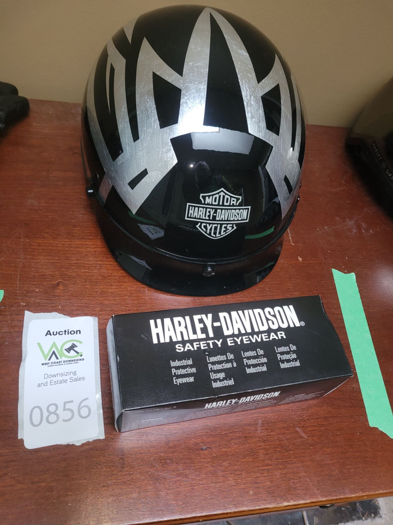 Lot 856 Harley MC Helmet, Glasses A