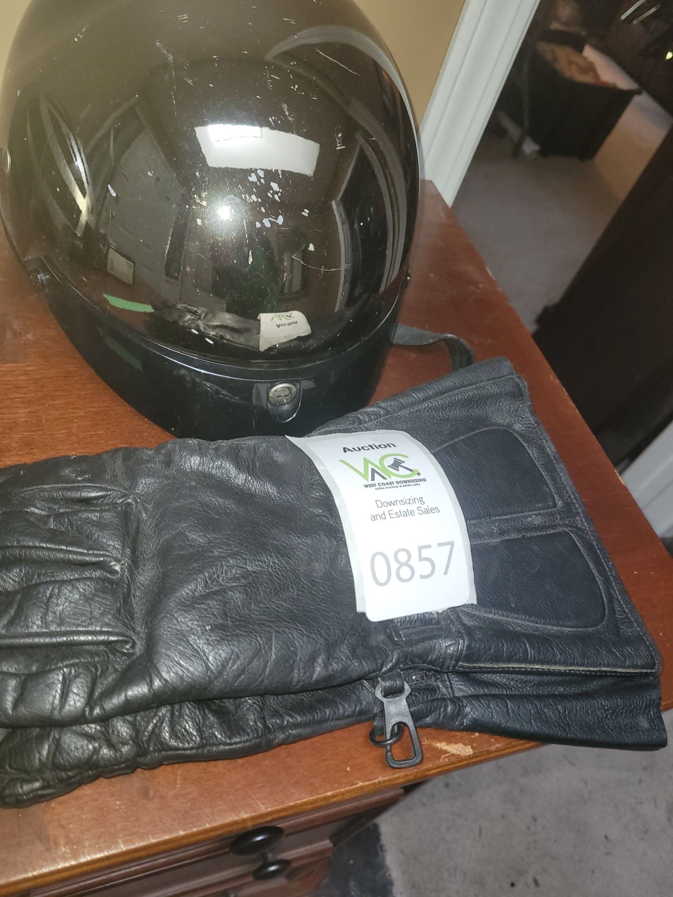 XL Harley Davidson Dot helmet. Leather riding gloves, size large. Pick up 9-10