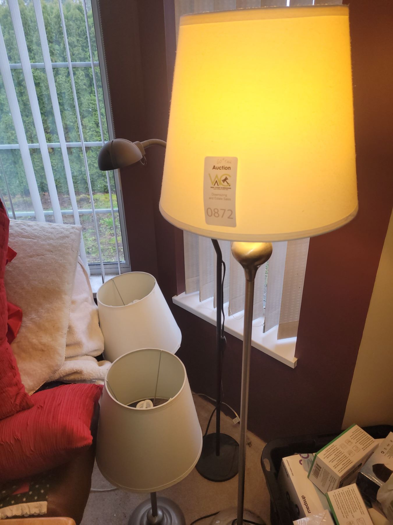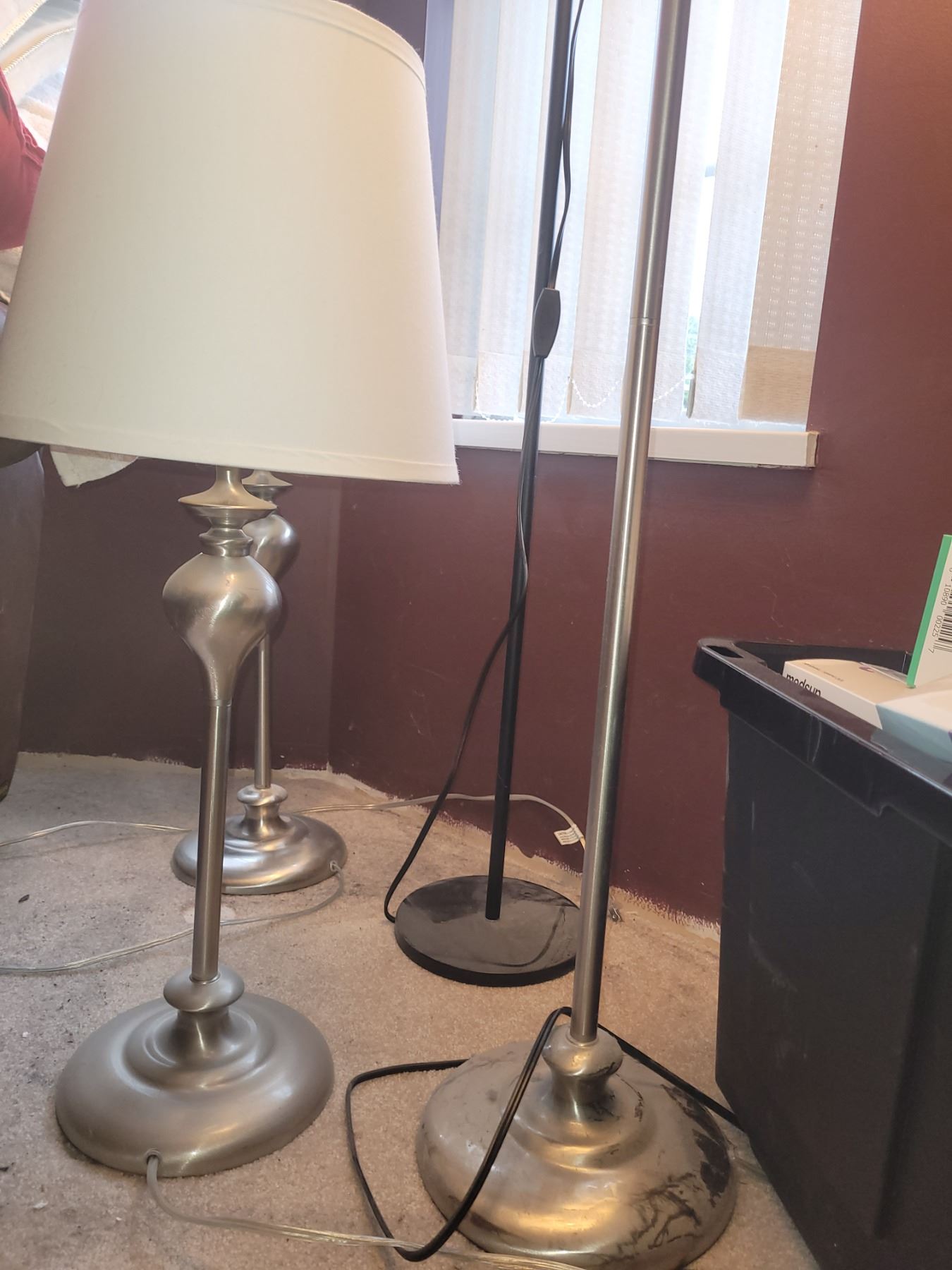 Floor lamp with shade 60", pair of table lamps, adjustable floor lamp. Untested, pick up 9-10